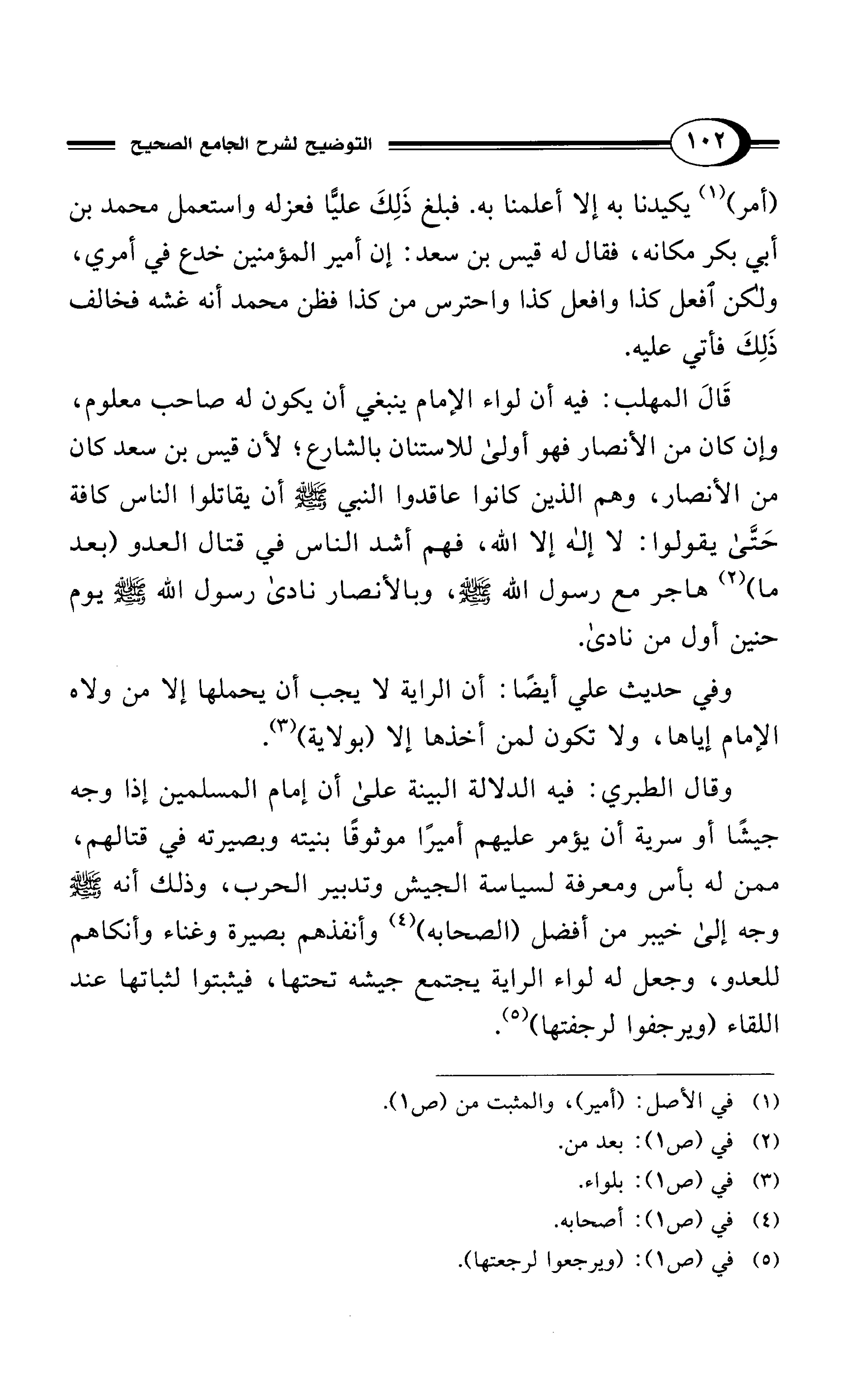 وقال الطبري: فيه الدلالة البينة على أن إمام المسلمين إذا وجه جيشا أو سرية أن يؤمر عليهم أميرًا موثوقًا بنيته وبصيرته في قتالهم، ممن له بأس ومعرفة لسياسة الجيش وتدبير الحرب، وذلك أنه - صلى الله عليه وسلم - وجه إلى خيبر من أفضل (الصحابه) (¬4) وأنفذهم بصيرة وغناء وأنكاهم للعدو، وجعل له لواء الراية يجتمع جيشه تحتها، فيثبتوا لثباتها عند اللقاء (ويرجفوا لرجفتها) (¬5).