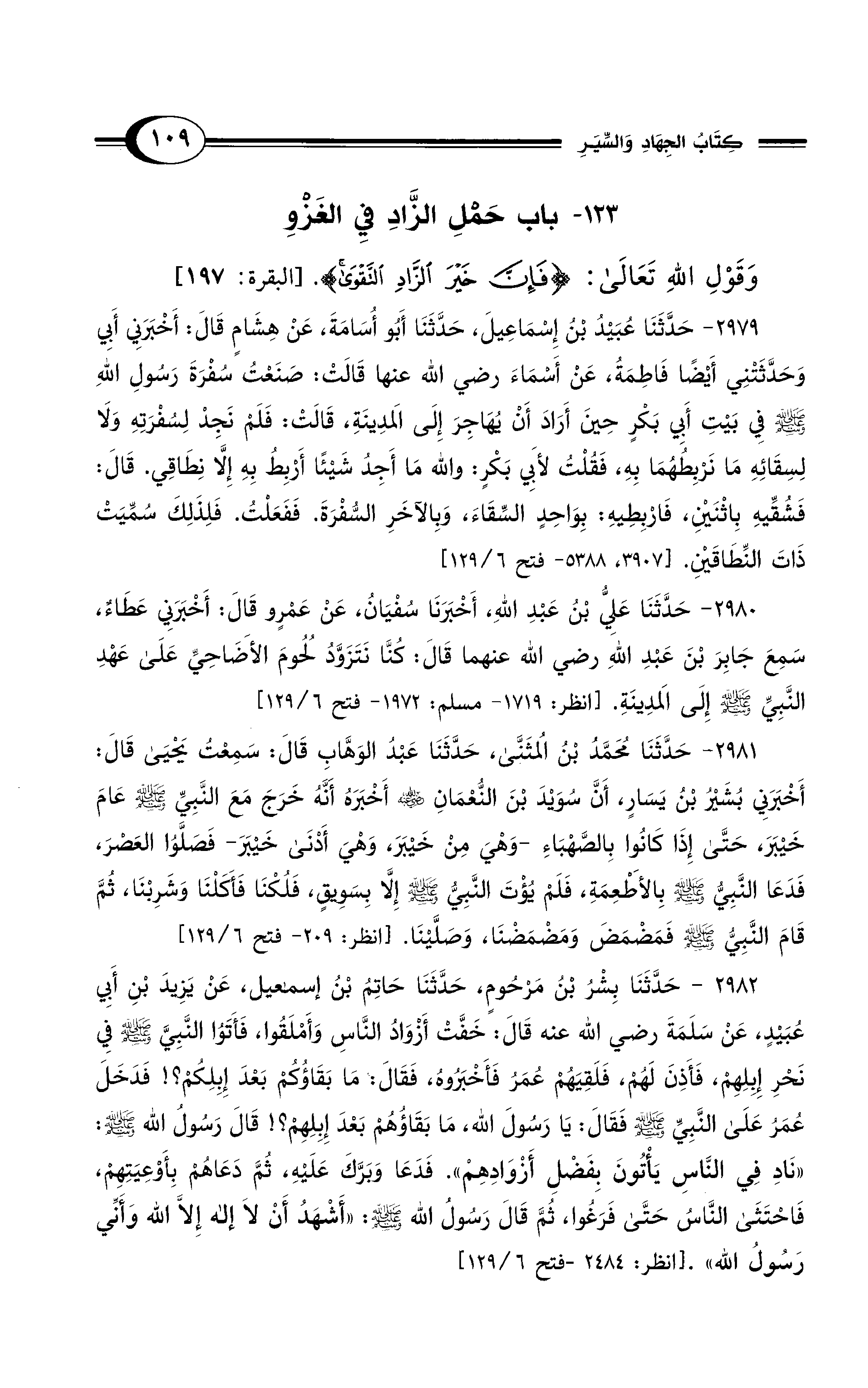 123 - باب حَمْلِ الزَّادِ فِي الغَزْوِ