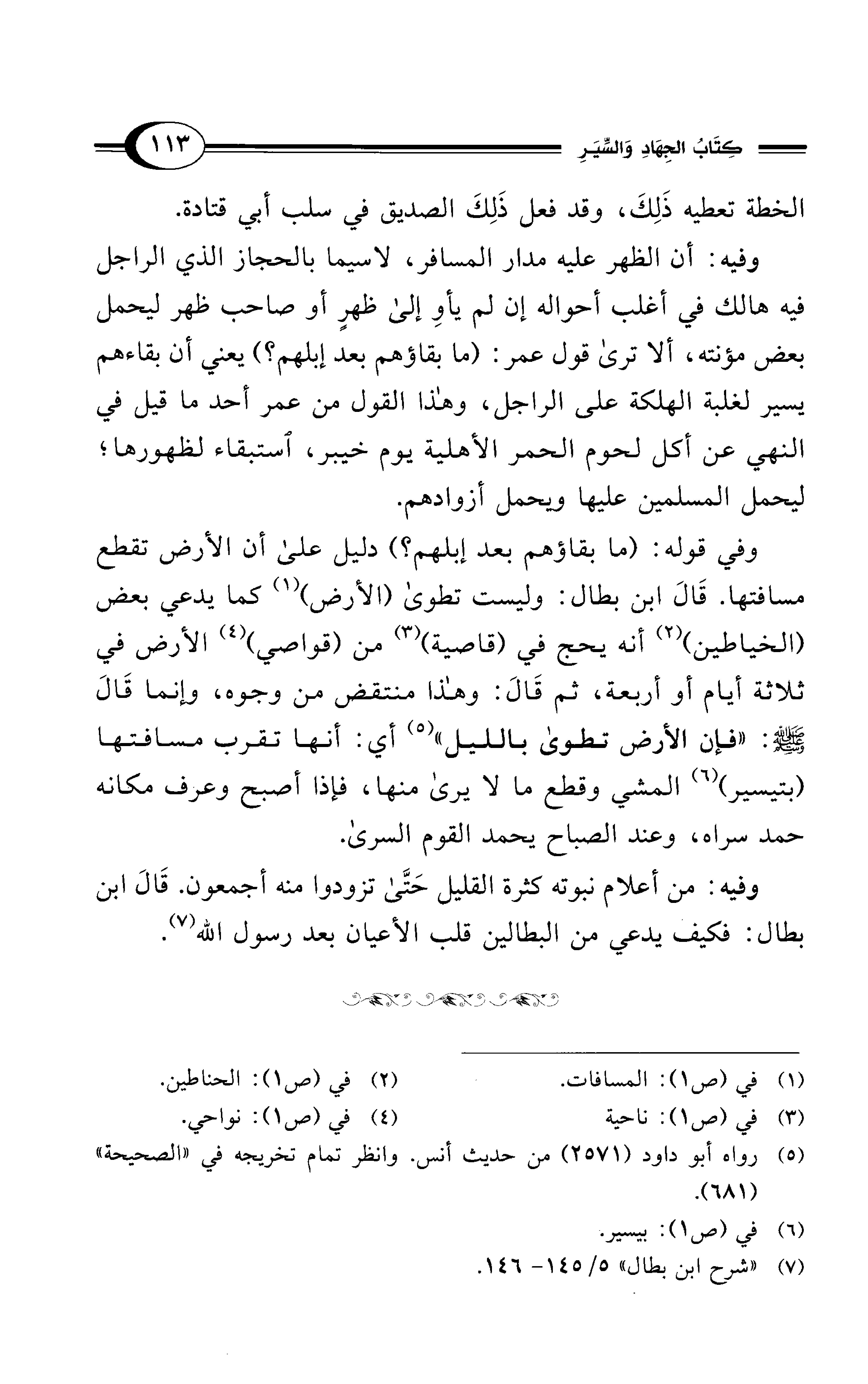 وفي قوله: (ما بقاؤهم بعد إبلهم؟) دليل على أن الأرض تقطع مسافتها. قَالَ ابن بطال: وليست تطوى (الأرض) (¬1) كما يدعي بعض (الخياطين) (¬2) أنه يحج في (قاصية) (¬3) من (قواصي) (¬4) الأرض في ثلاثة أيام أو أربعة، ثم قَالَ: وهذا منتقض من وجوه، وإنما قَالَ - صلى الله عليه وسلم -: "فإن الأرض تطوى بالليل" (¬5) أي: أنها تقرب مسافتها (بتيسير) (¬6) المشي وقطع ما لا يرى منها، فإذا أصبح وعرف مكانه حمد سراه، وعند الصباح يحمد القوم السرى.