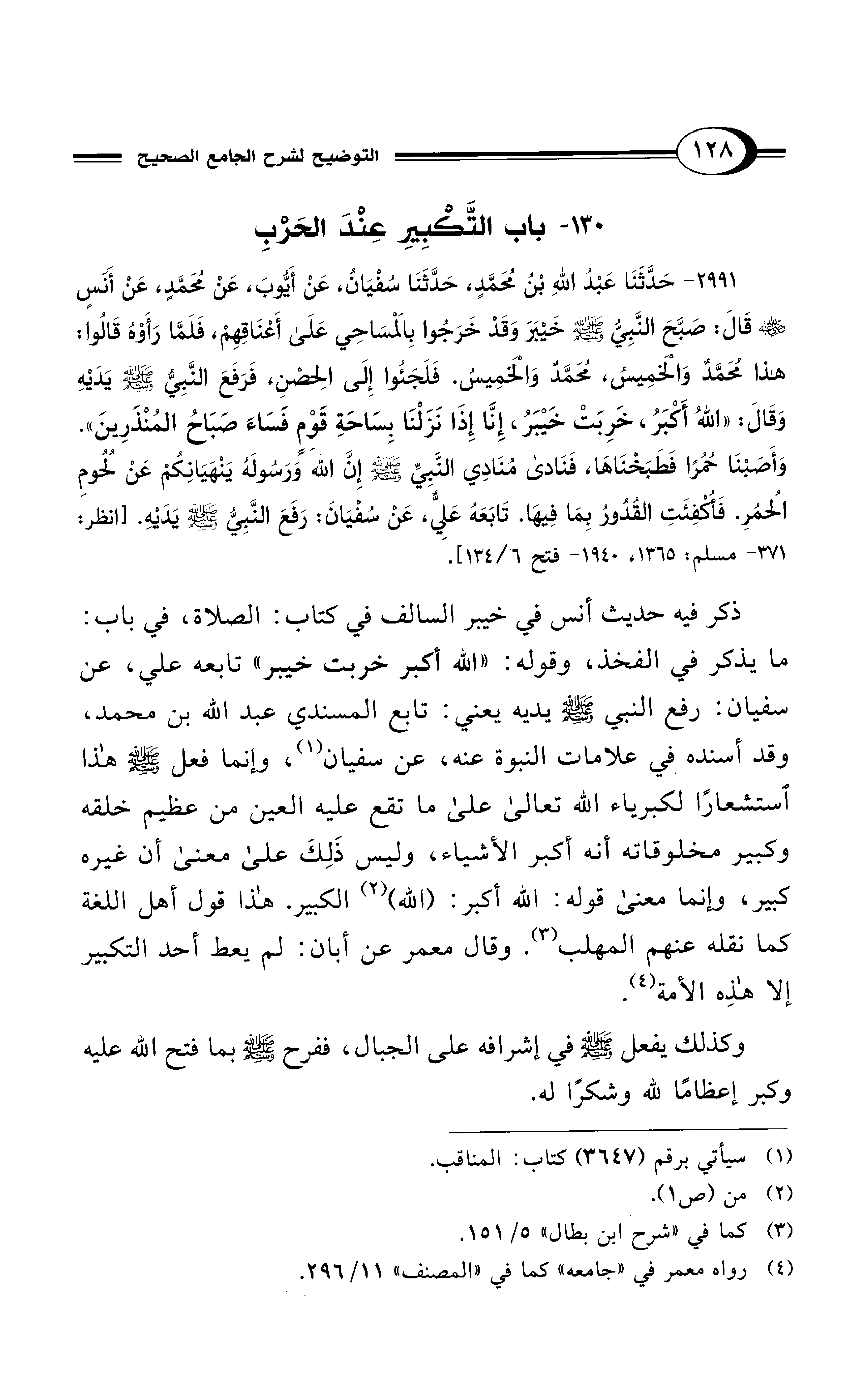 130 - باب التَّكْبِيِر عِنْدَ الحَرْبِ