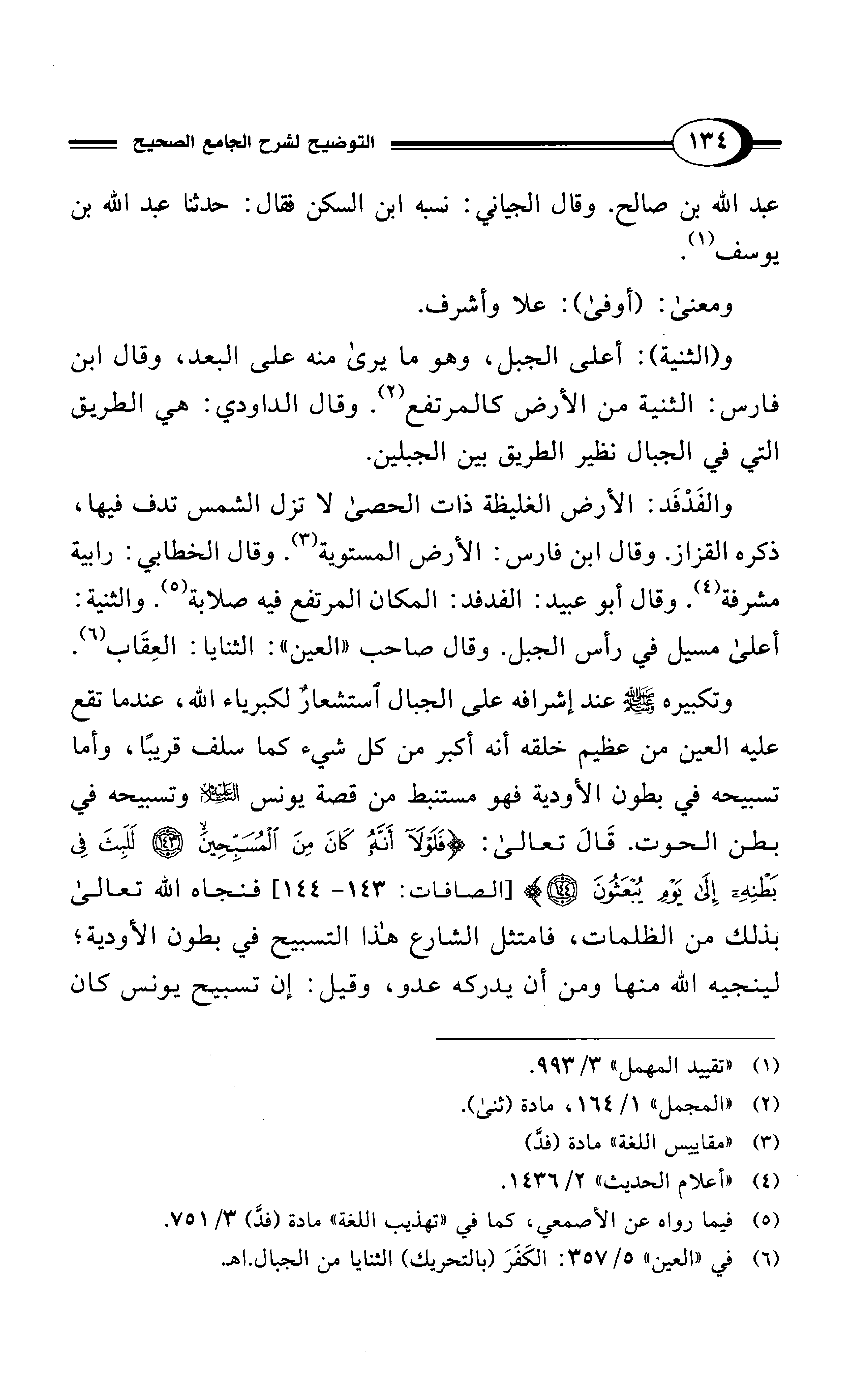 وتكبيره - صلى الله عليه وسلم - عند إشرافه على الجبال استشعارٌ لكبرياء الله، عندما تقع عليه العين من عظيم خلقه أنه أكبر من كل شيء كما سلف قريبًا، وأما تسبيحه في بطون الأودية فهو مستنبط من قصة يونس - عليه السلام - وتسبيحه في بطن الحوت. قَالَ تعالى: {فَلَوْلَا أَنَّهُ كَانَ مِنَ الْمُسَبِّحِينَ (143) لَلَبِثَ فِي بَطْنِهِ إِلَى يَوْمِ يُبْعَثُونَ (144)} [الصافات: 143 - 144] فنجاه الله تعالى بذلك من الظلمات، فامتثل الشارع هذا التسبيح في بطون الأودية؛ لينجيه الله منها ومن أن يدركه عدو، وقيل: إن تسبيح يونس كان