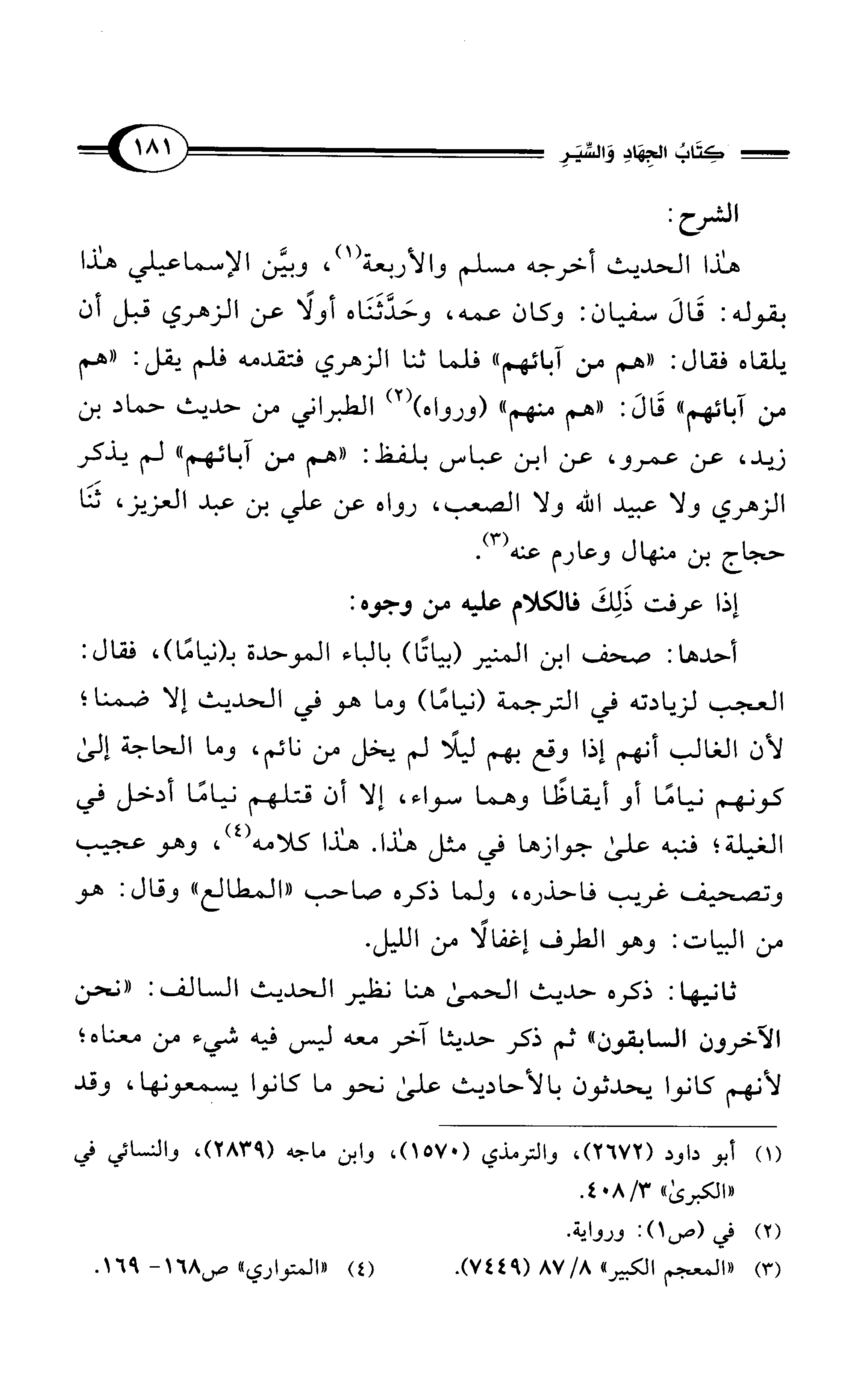 هذا الحديث أخرجه مسلم والأربعة (¬1)، وبيَّن الإسماعيلي هذا بقوله: قَالَ سفيان: وكان عمه، وحَدَّثَنَاه أولاً عن الزهري قبل أن يلقاه فقال: "هم من آبائهم" فلما ثنا الزهري فتقدمه فلم يقل: "هم من آبائهم " قَالَ: "هم منهم" (ورواه) (¬2) الطبراني من حديث حماد بن زيد، عن عمرو، عن ابن عباس بلفظ: "هم من آبائهم" لم يذكر الزهري ولا عبيد الله ولا الصعب، رواه عن علي بن عبد العزيز، ثَنَا حجاج بن منهال وعارم عنه (¬3).
