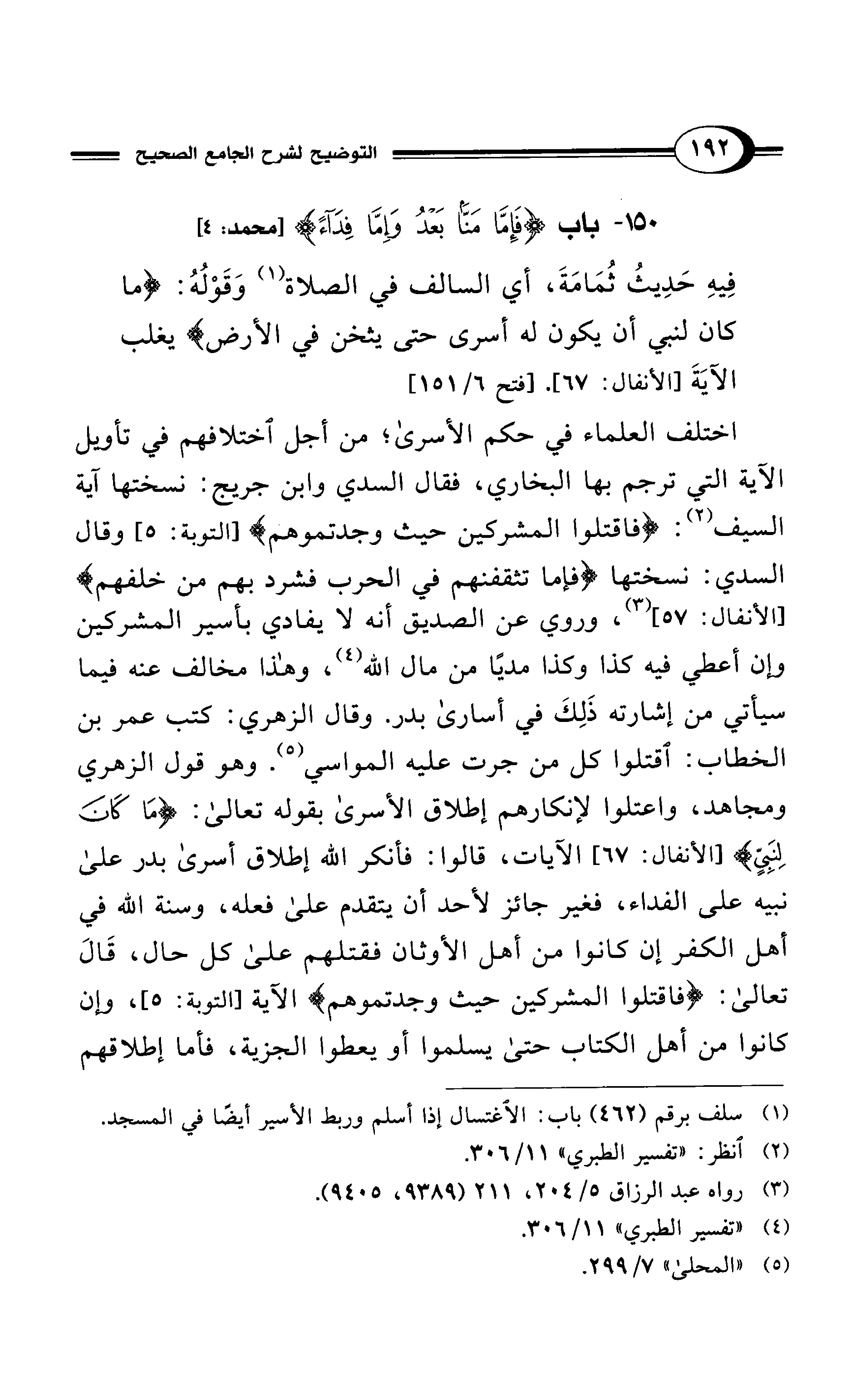 150 - باب {فَإِمَّا مَنًّا بَعْدُ وَإِمَّا فِدَاءً} [محمد: 4]