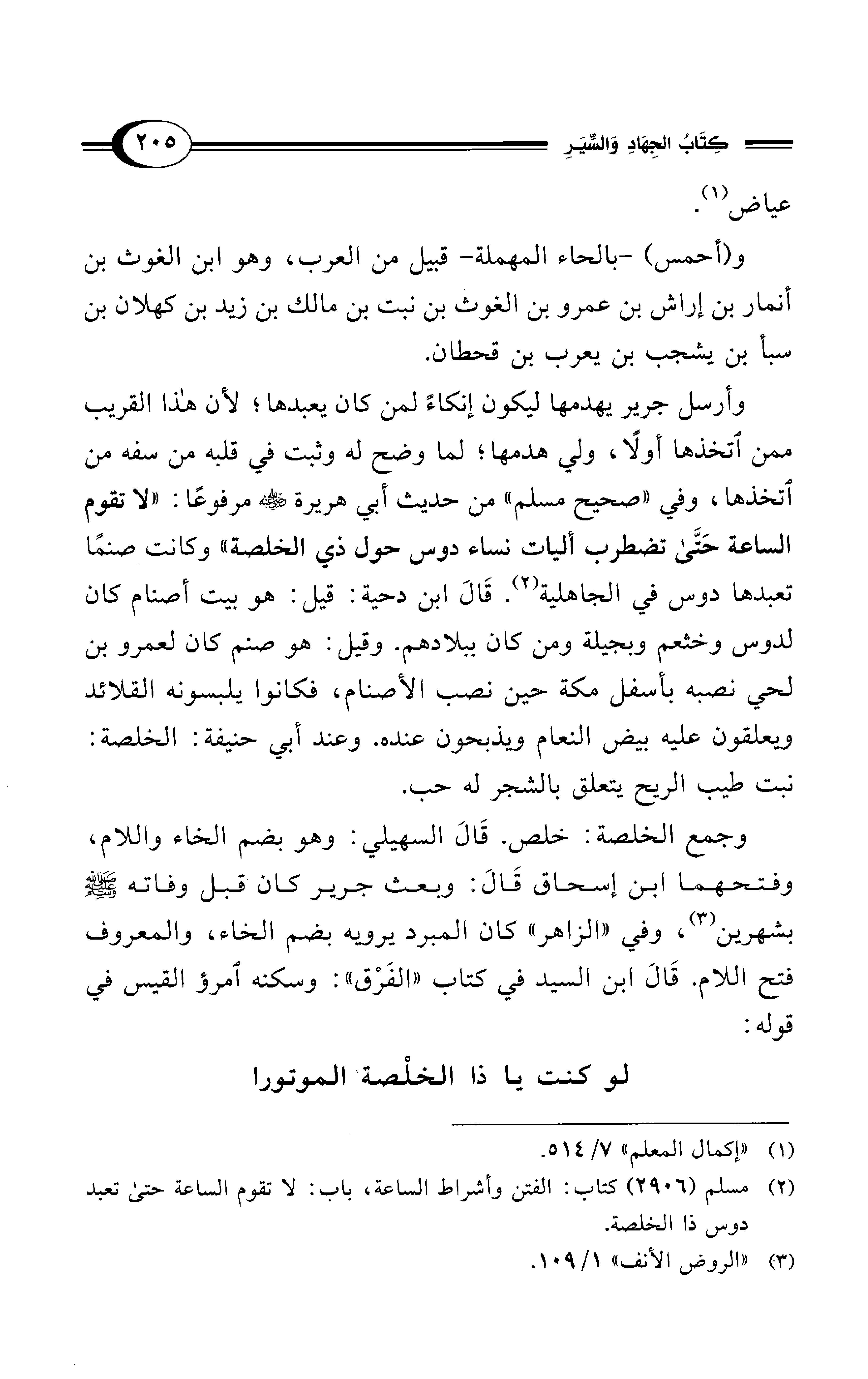وجمع الخلصة: خلص. قَالَ السهيلي: وهو بضم الخاء واللام، وفتحهما ابن إسحاق قَالَ: وبعث جرير كان قبل وفاته - صلى الله عليه وسلم - بشهرين (¬3)، وفي "الزاهر" كان المبرد يرويه بضم الخاء، والمعروف فتح اللام. قَال ابن السيد في كتاب "الفَرْق": وسكنه امرؤ القيس في قوله: