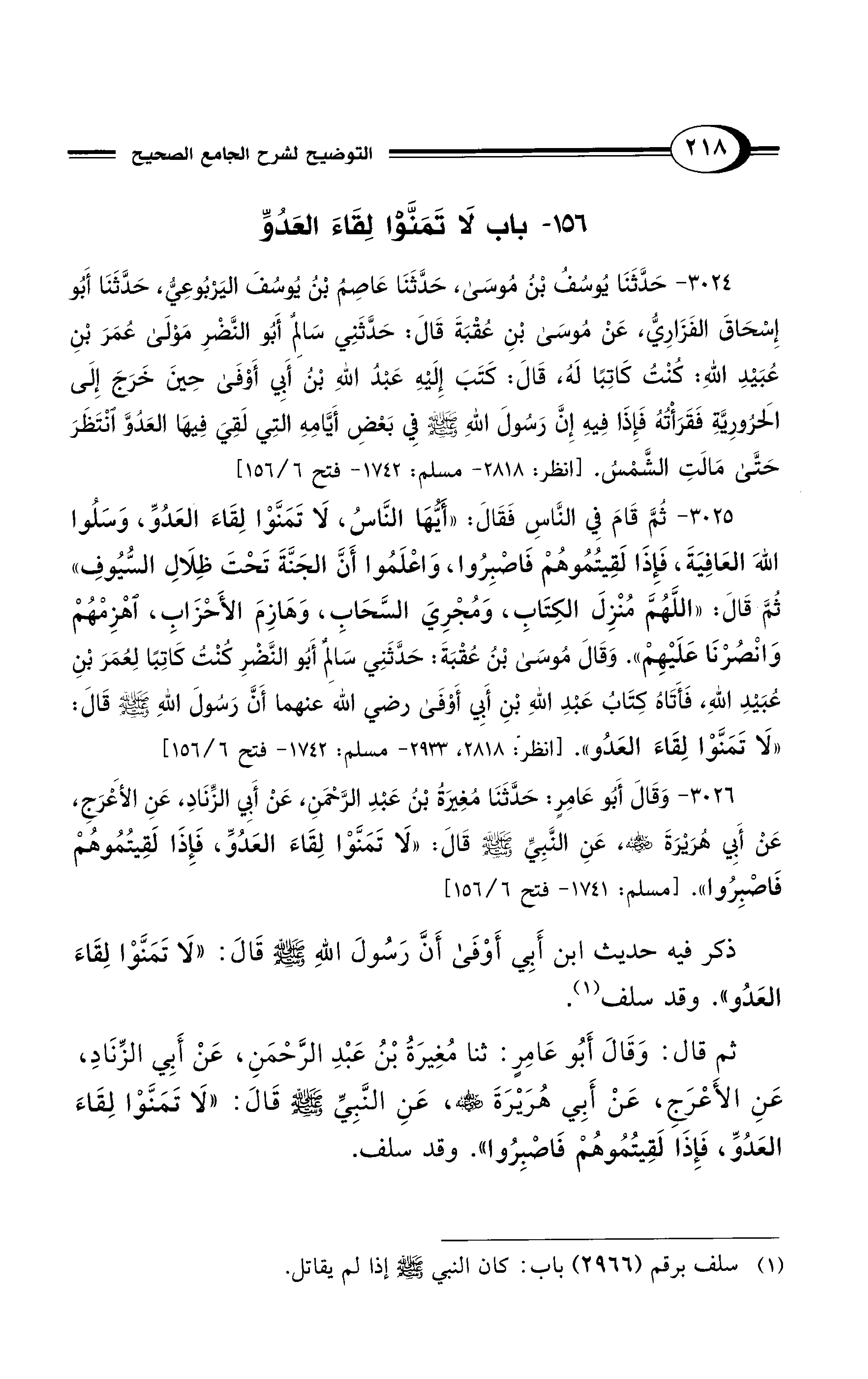 156 - باب لَا تَمَنَّوْا لِقَاءَ العَدُوِّ