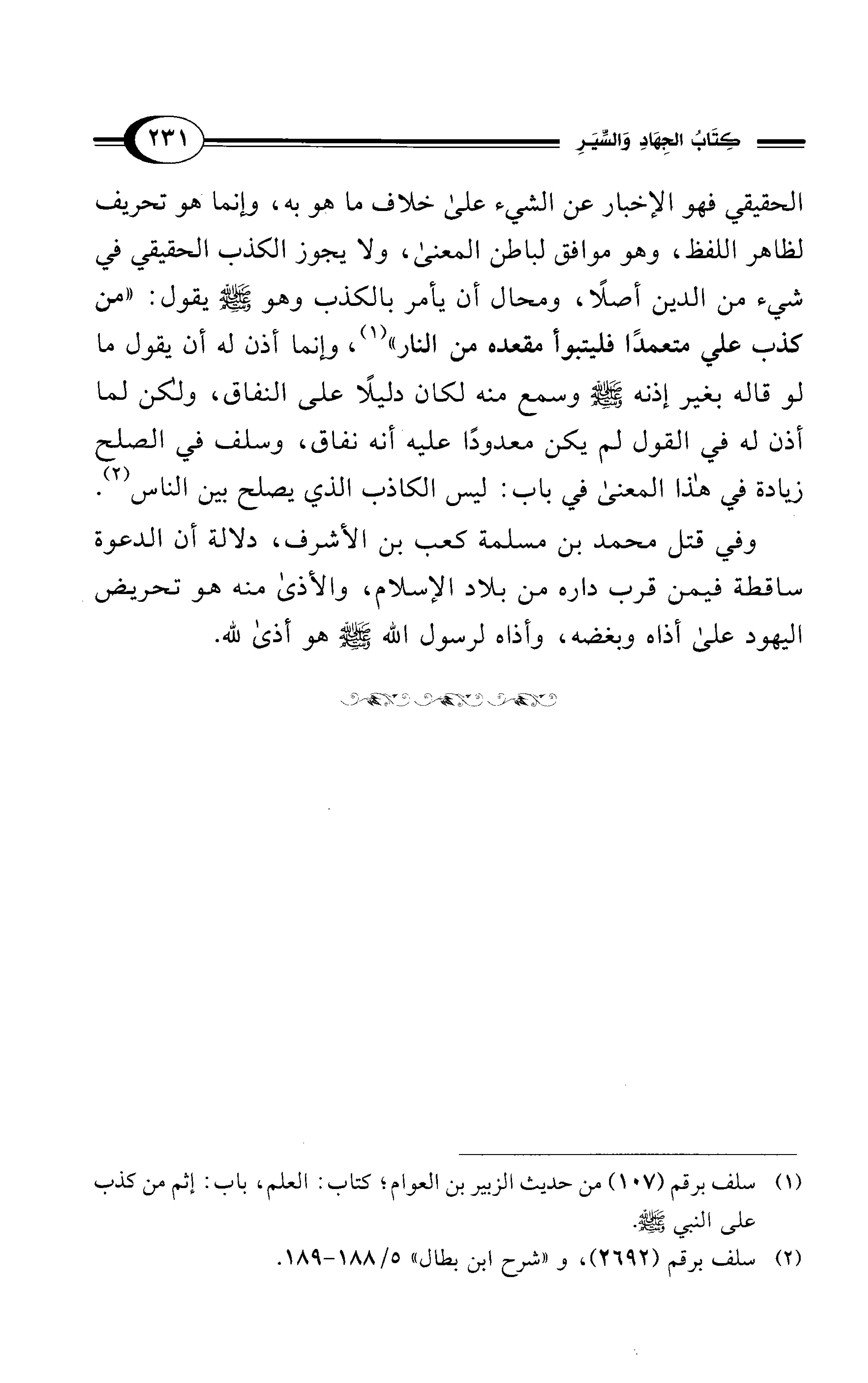 الحقيقي فهو الإخبار عن الشيء على خلاف ما هو به، وإنما هو تحريف لظاهر اللفظ، وهو موافق لباطن المعنى، ولا يجوز الكذب الحقيقي في شيء من الدين أصلاً، ومحال أن يأمر بالكذب وهو - صلى الله عليه وسلم - يقول: "من كذب على متعمدًا فليتبوأ مقعده من النار" (¬1)، وإنما أذن له أن يقول ما لو قاله بغير إذنه - صلى الله عليه وسلم - وسمع منه لكان دليلًا على النفاق، ولكن لما أذن له في القول لم يكن معدودًا عليه أنه نفاق، وسلف في الصلح زيادة في هذا المعنى في باب: ليس الكاذب الذي يصلح بين الناس (¬2).