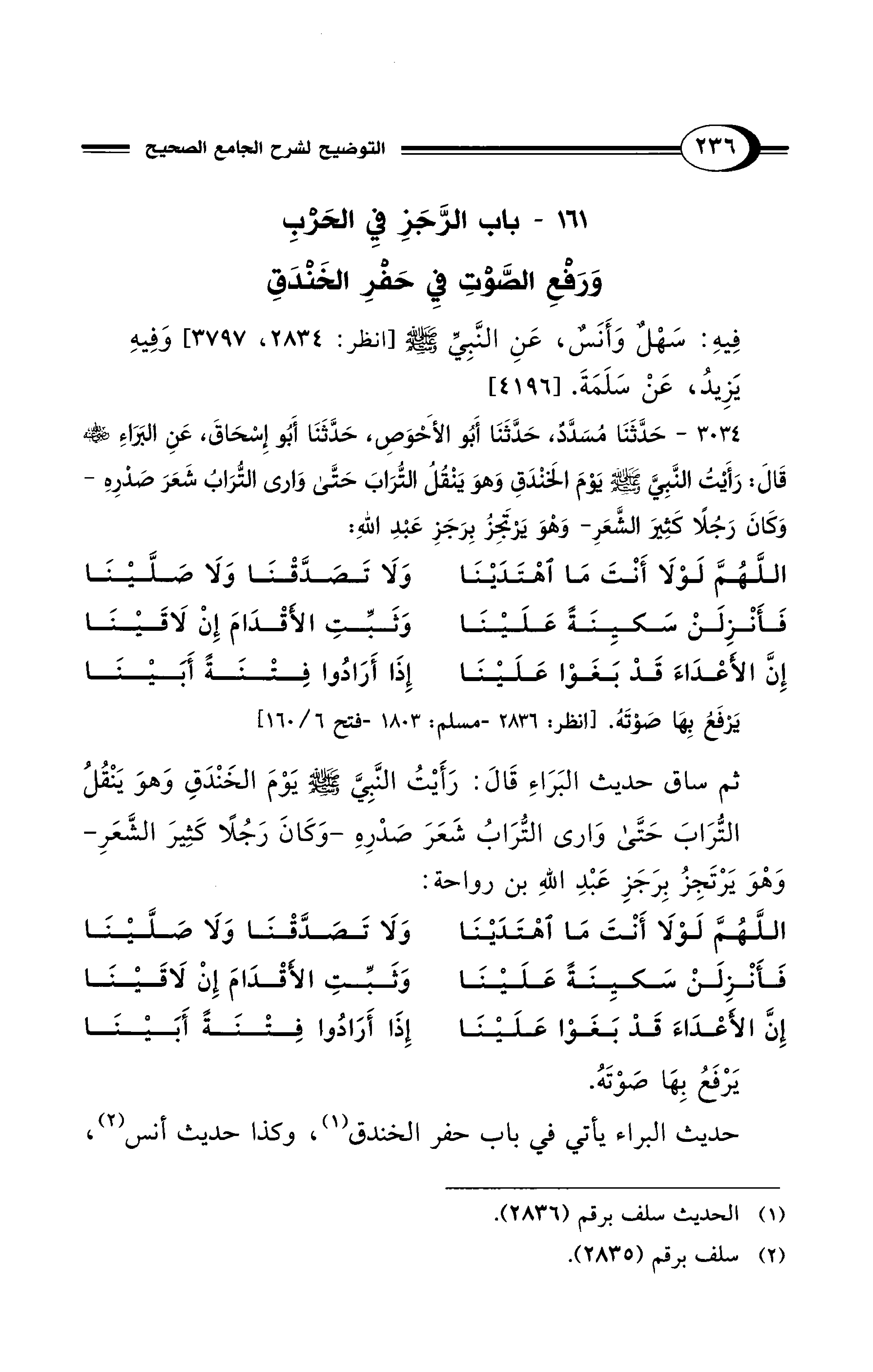 161 - باب الرَّجَزِ فِي الحَرْبِ وَرَفْعِ الصَّوْتِ فِي حَفرِ الخَنْدَقِ