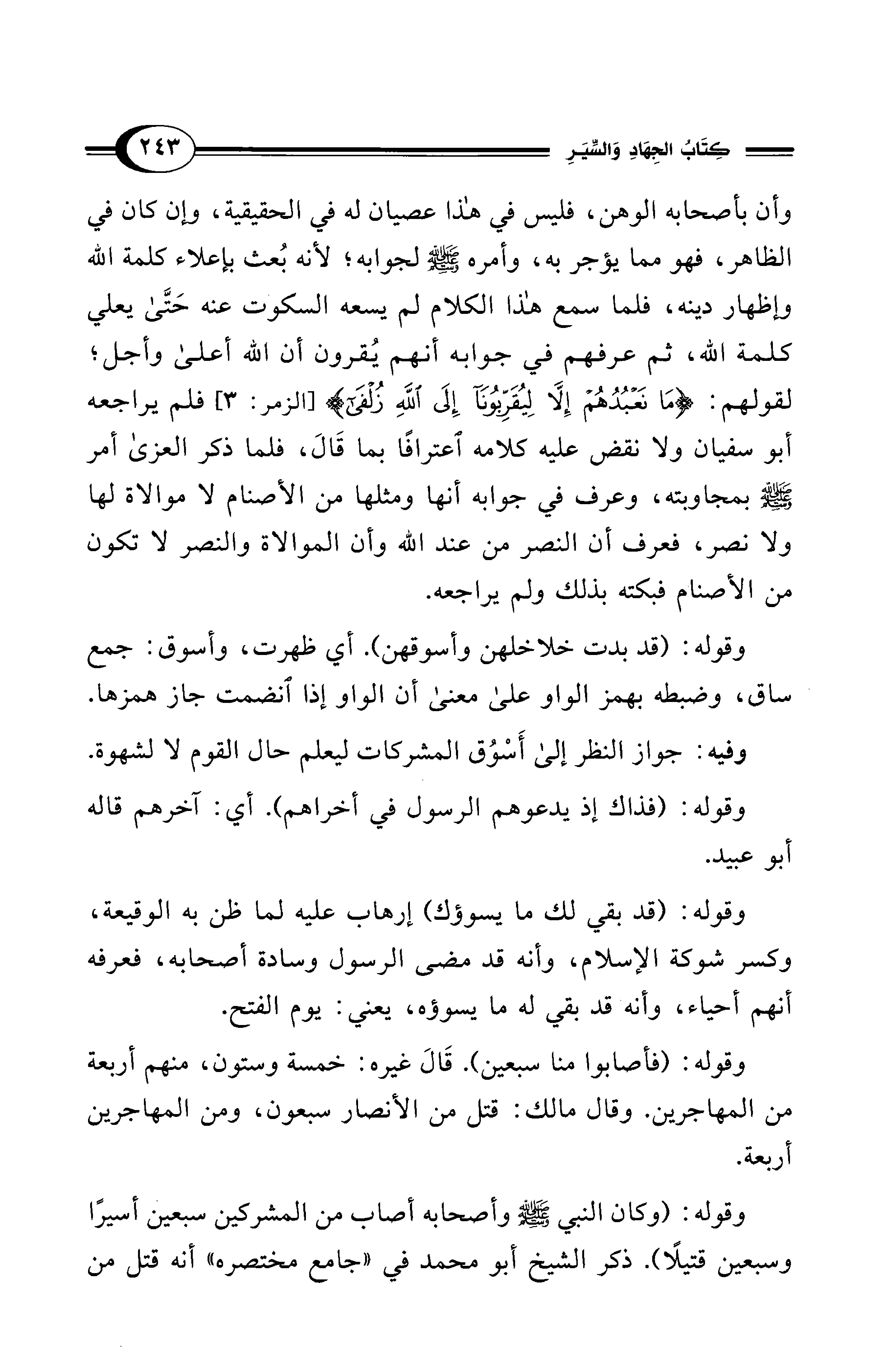 وقوله: (وكان النبي - صلى الله عليه وسلم - وأصحابه أصاب من المشركين سبعين أسيرًا وسبعين قتيلًا). ذكر الشيخ أبو محمد في "جامع مختصره" أنه قتل من