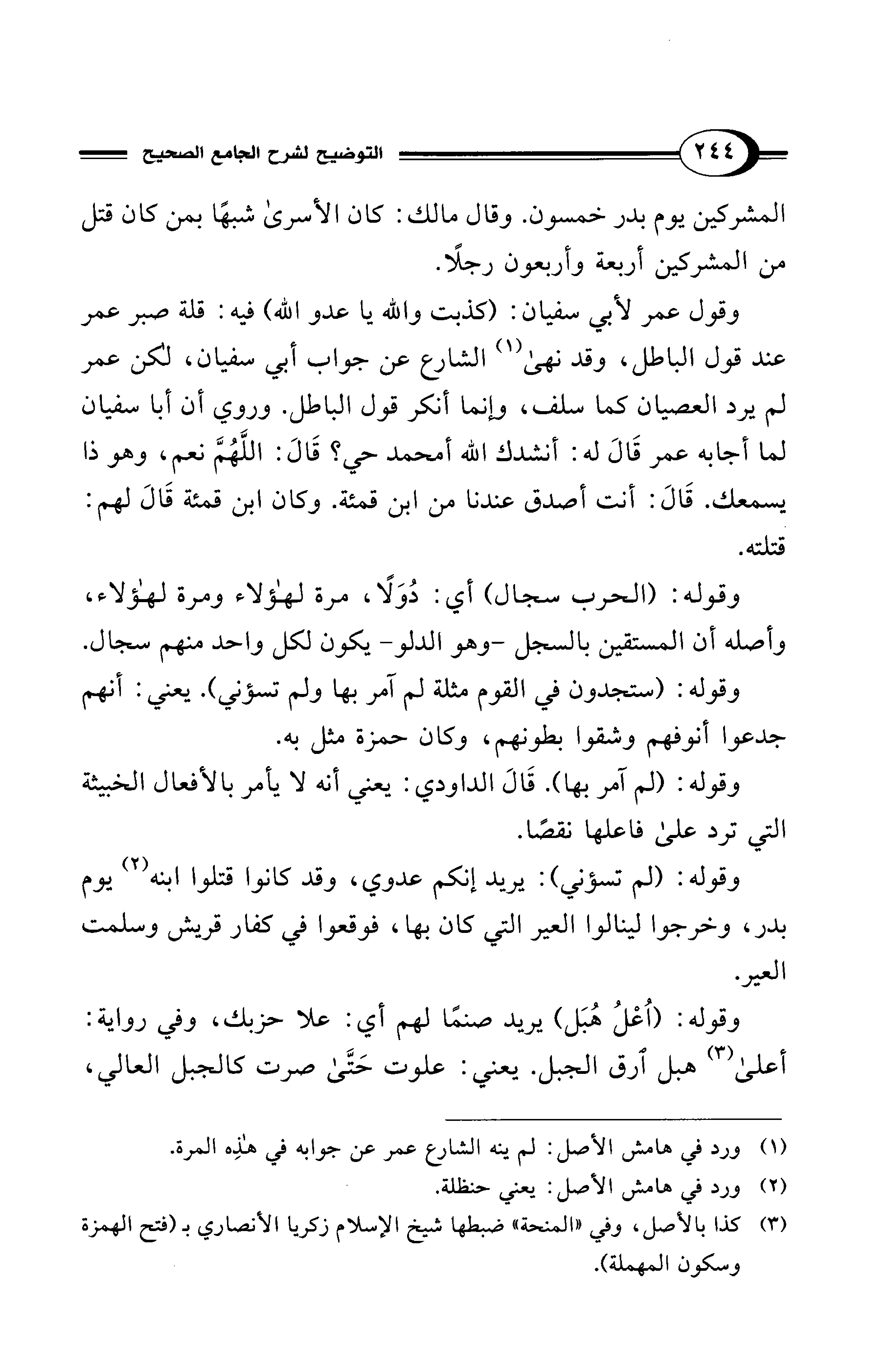 (¬1) ورد في هامش الأصل: لم ينه الشارع عمر عن جوابه في هذِه المرة.