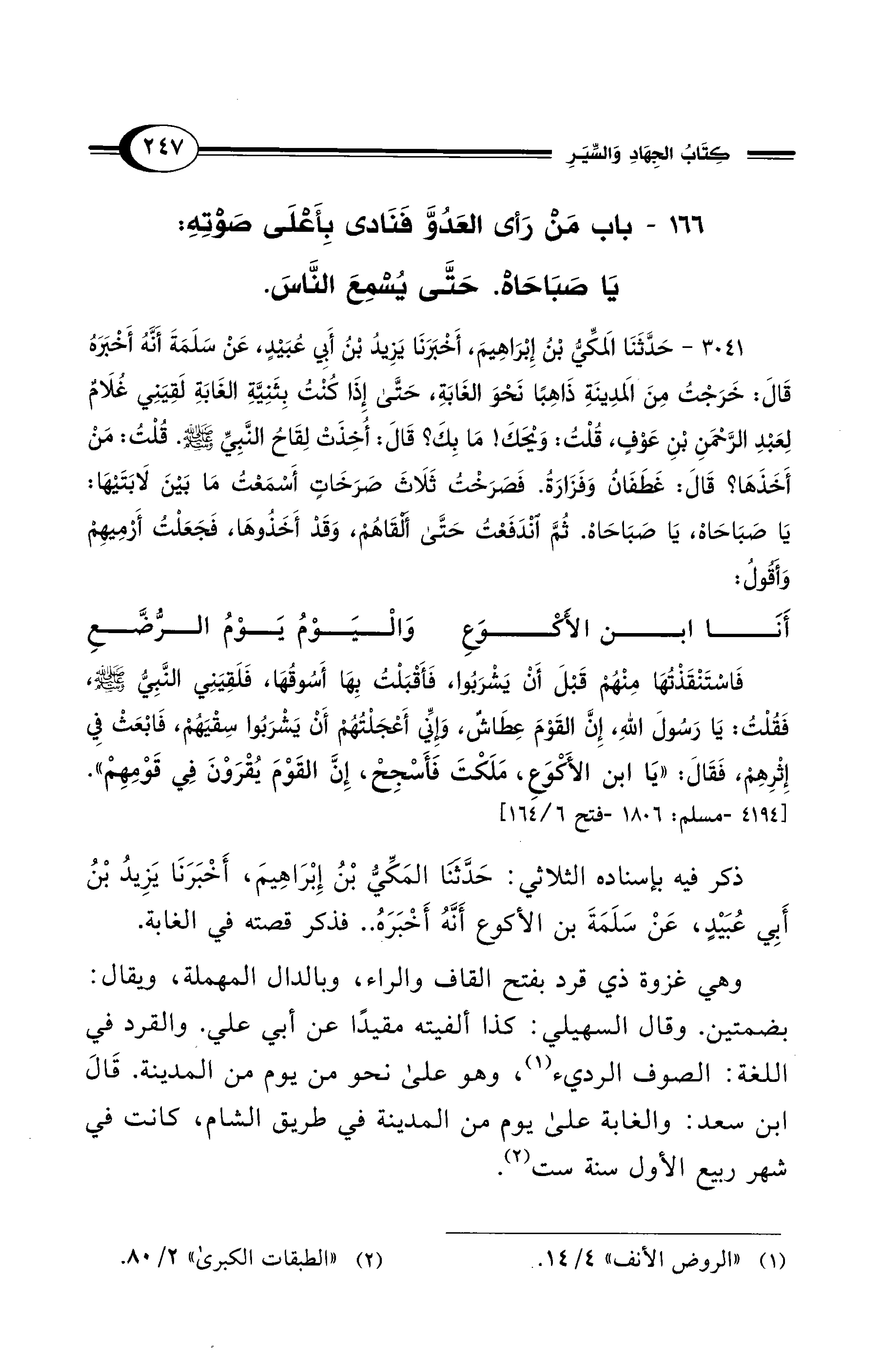 166 - باب مَن رَأى العَدُوَّ فَنَادى بِأَعْلَى صَوْتِهِ: يَا صَبَاحَاهْ. حَتَّى يُسْمِعَ النَّاسَ.