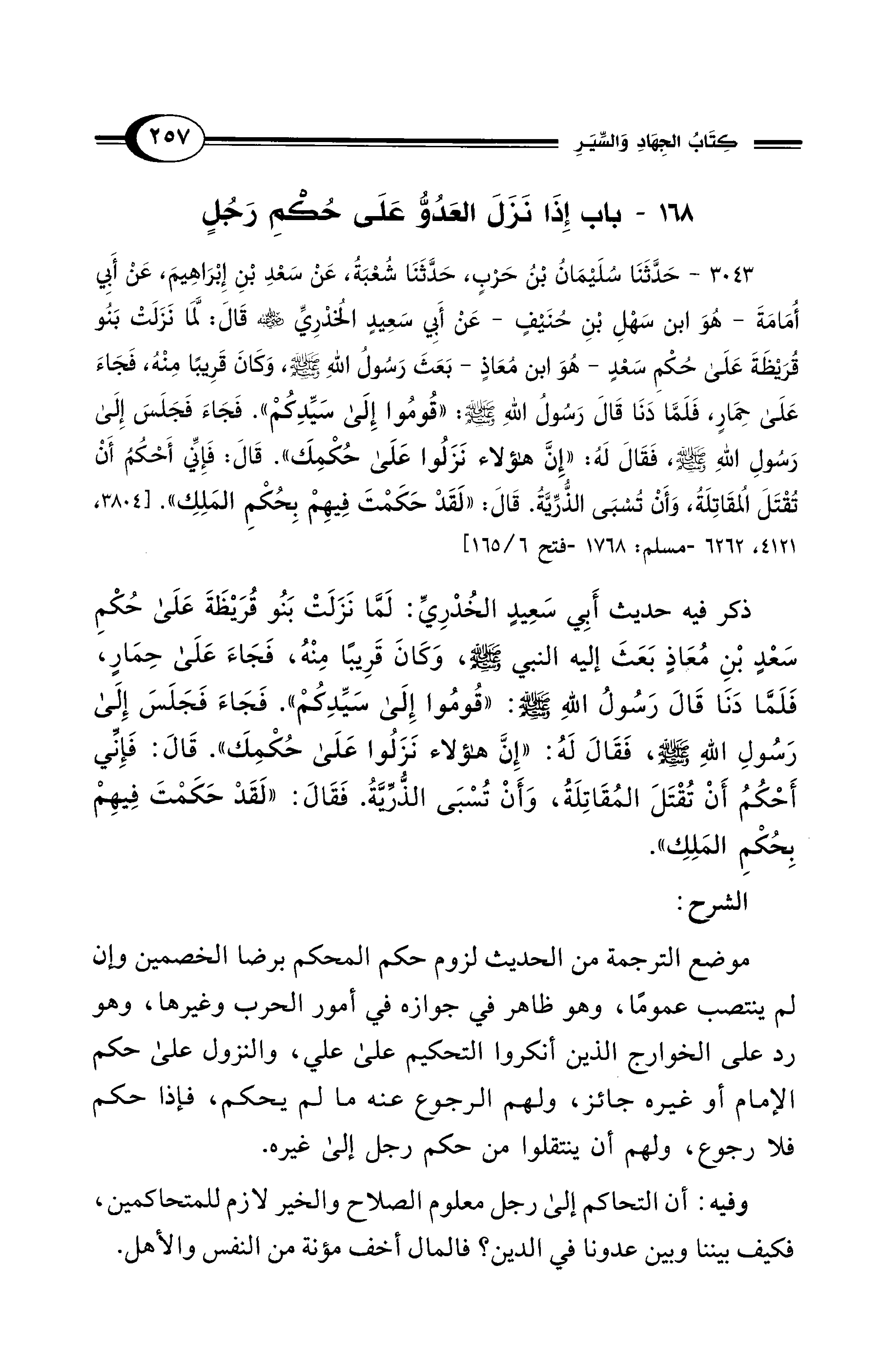 168 - باب إِذَا نَزَلَ العَدُوُّ عَلَى حُكْمِ رَجُلٍ