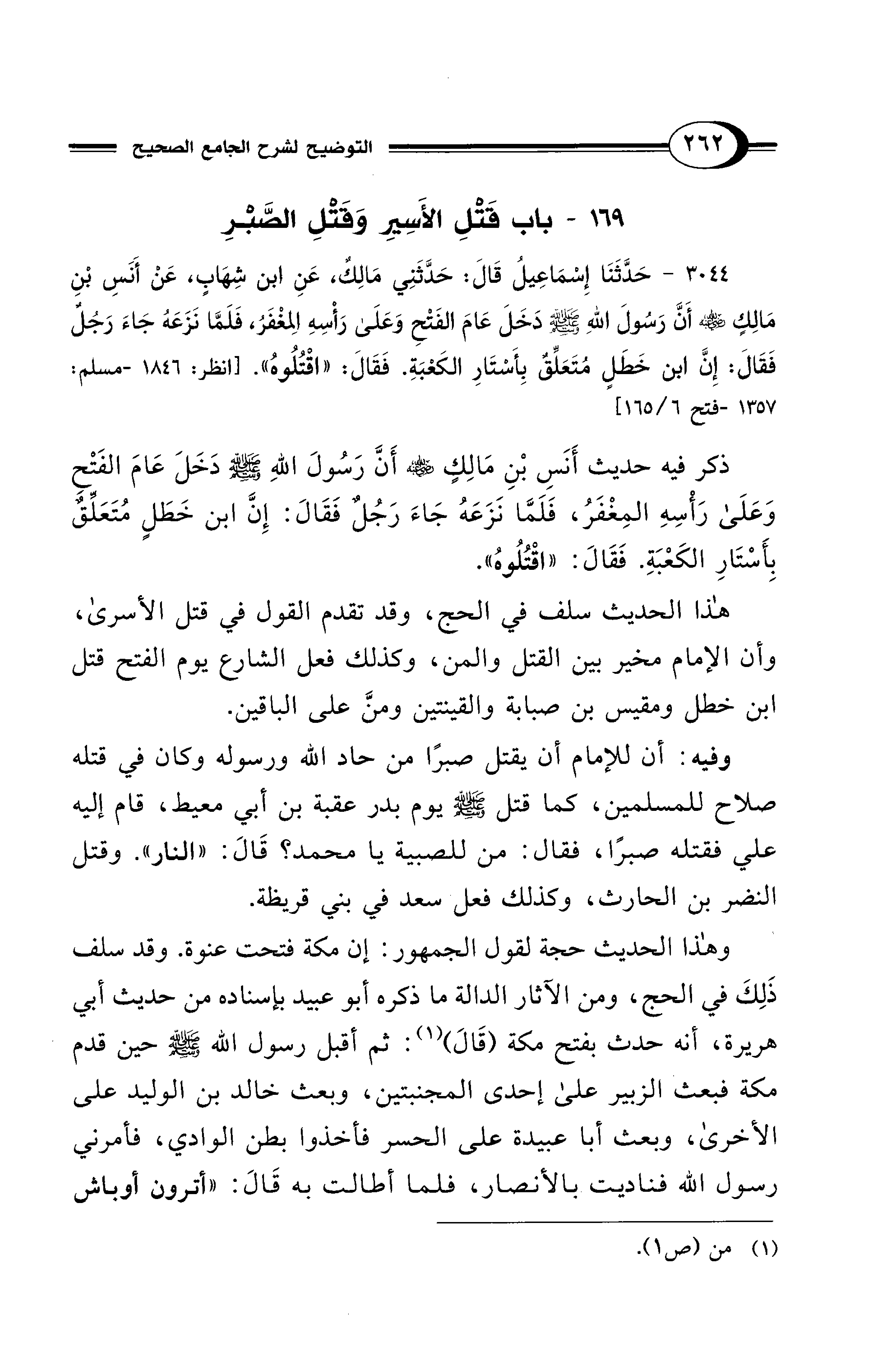 169 - باب قَتْلِ الأَسِيِر وَقَتْلِ الصَّبْرِ