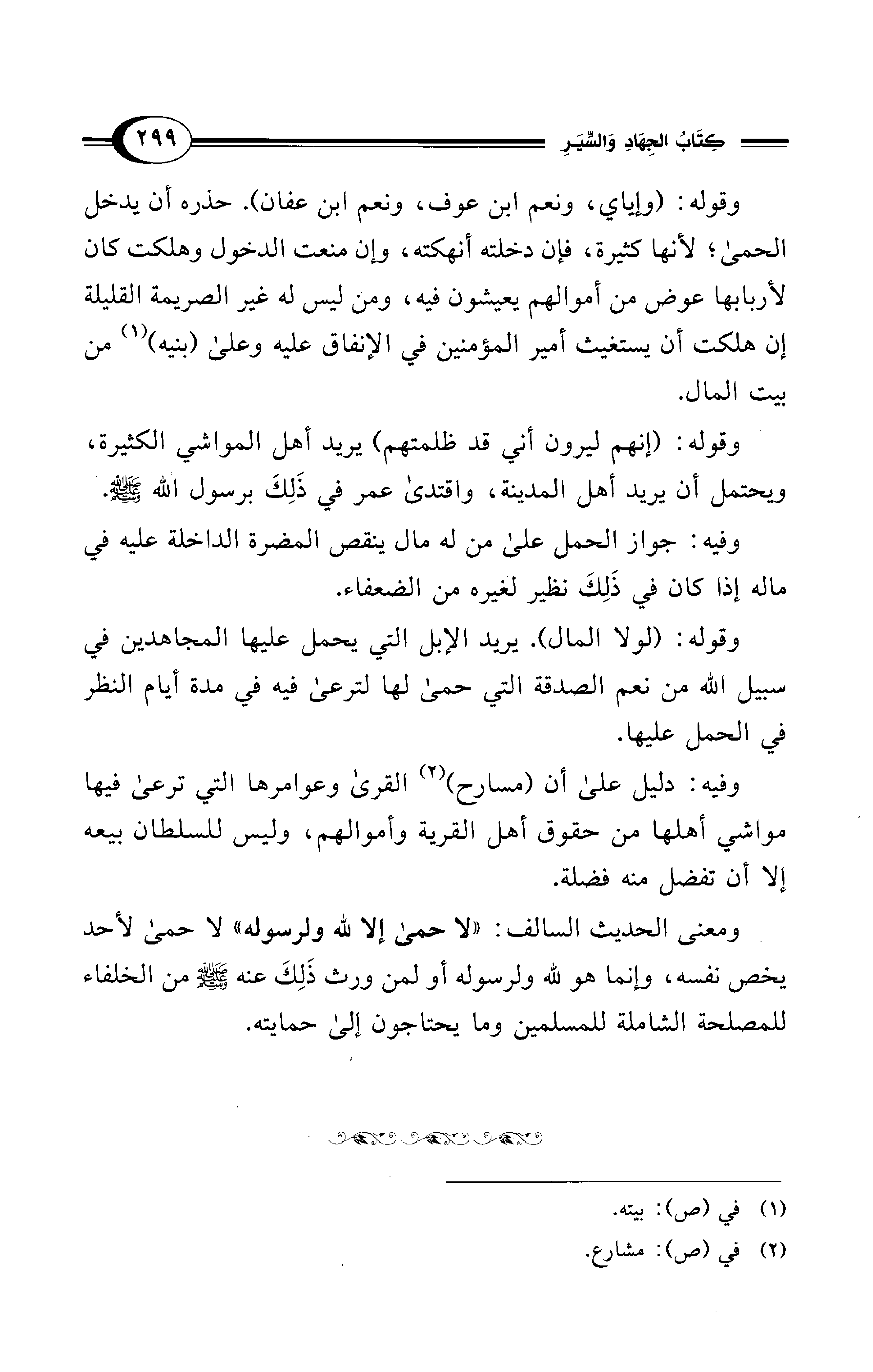 ومعنى الحديث السالف: "لا حمى إلالله ولرسوله" لا حمى لأحد يخص نفسه، وإنما هو لله ولرسوله أو لمن ورث ذَلِكَ عنه - صلى الله عليه وسلم - من الخلفاء للمصلحة الشاملة للمسلمين وما يحتاجون إلى حمايته.