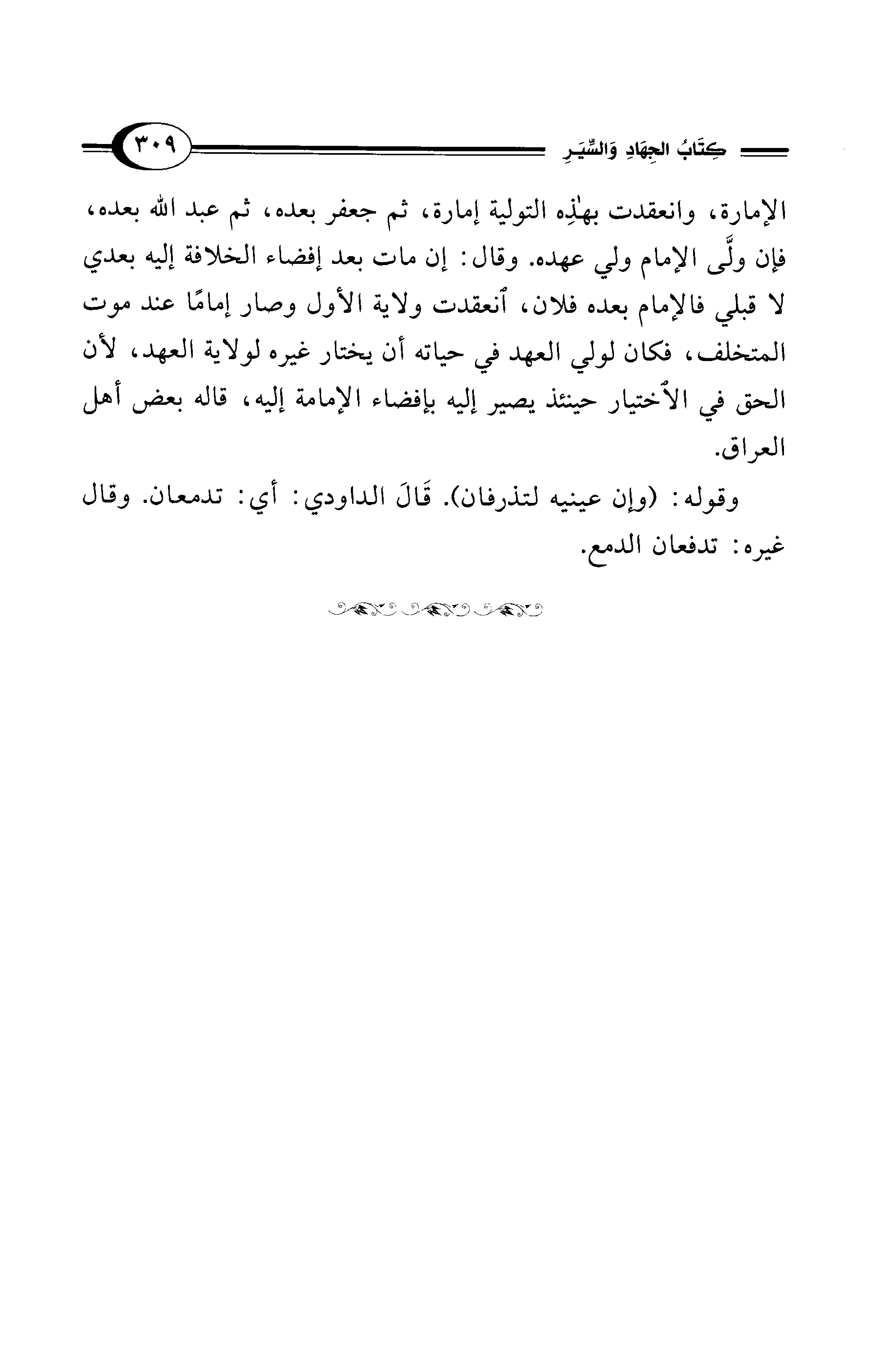 الإمارة، وانعقدت بهذِه التولية إمارة، ثم جعفر بعده، ثم عبد الله بعده، فإن ولَّى الإمام ولي عهده. وقال: إن مات بعد إفضاء الخلافة إليه بعدي لا قبلي فالإمام بعده فلان، انعقدت ولاية الأول وصار إمامًا عند موت المتخلف، فكان لولي العهد في حياته أن يختار غيره لولاية العهد؛ لأن الحق في الاختيار حينئذ يصير إليه بإفضاء الإمامة إليه، قاله بعض أهل العراق.
