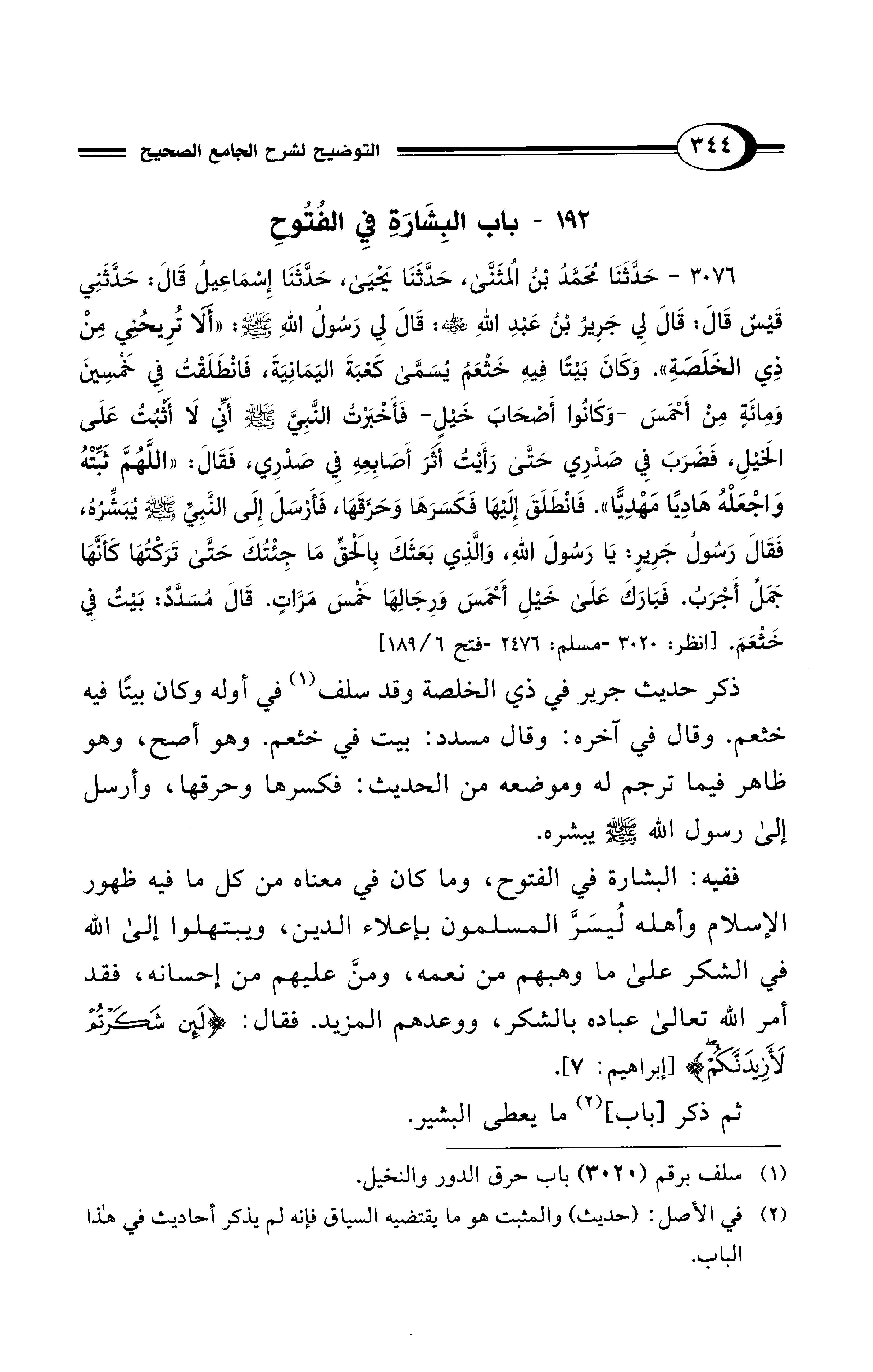 192 - باب البِشَارَةِ فِي الفُتُوحِ