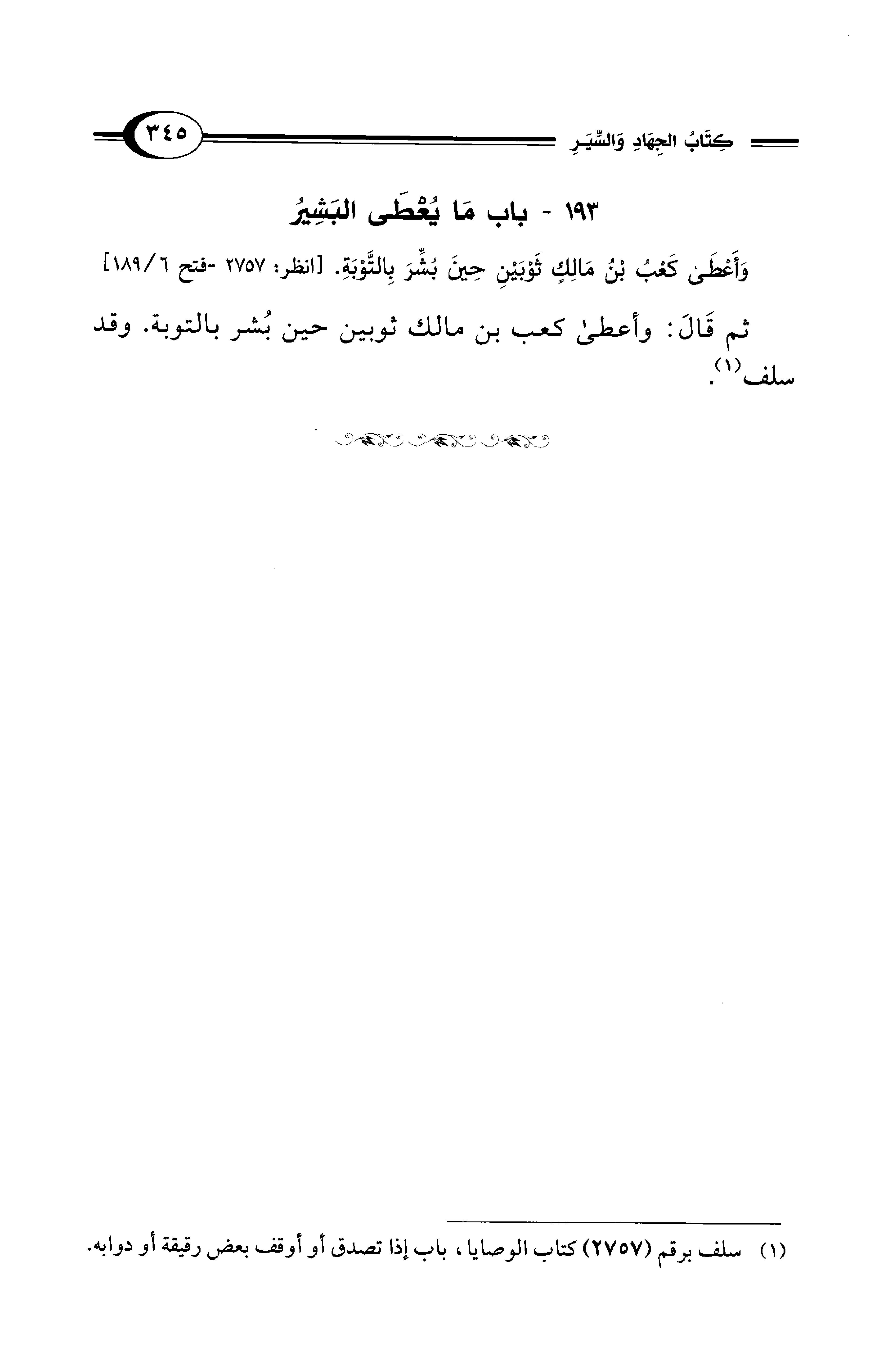 193 - باب مَا يُعْطَى البَشِيُر