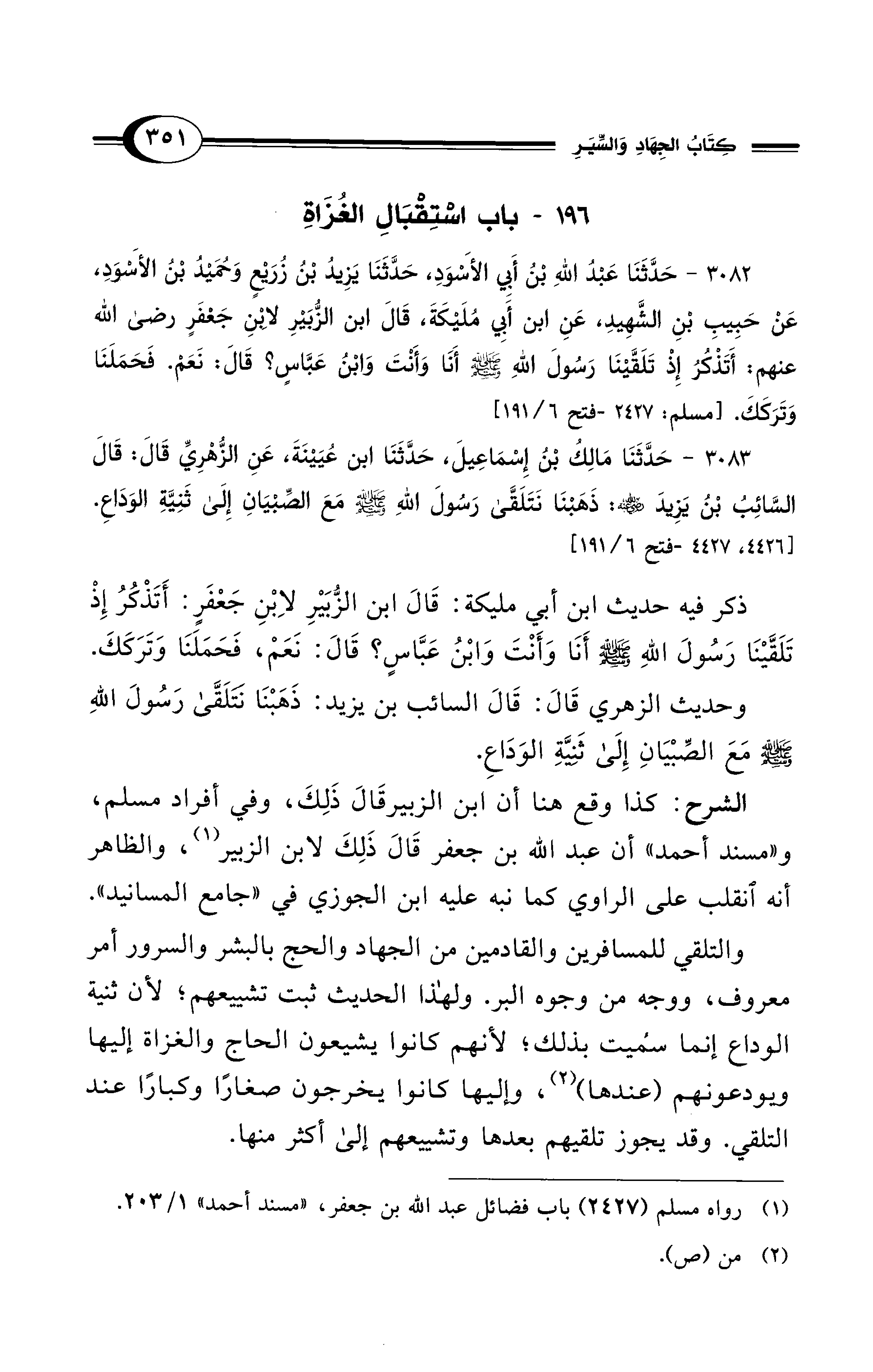 196 - باب اسْتِقْبَالِ الغُزَاةِ