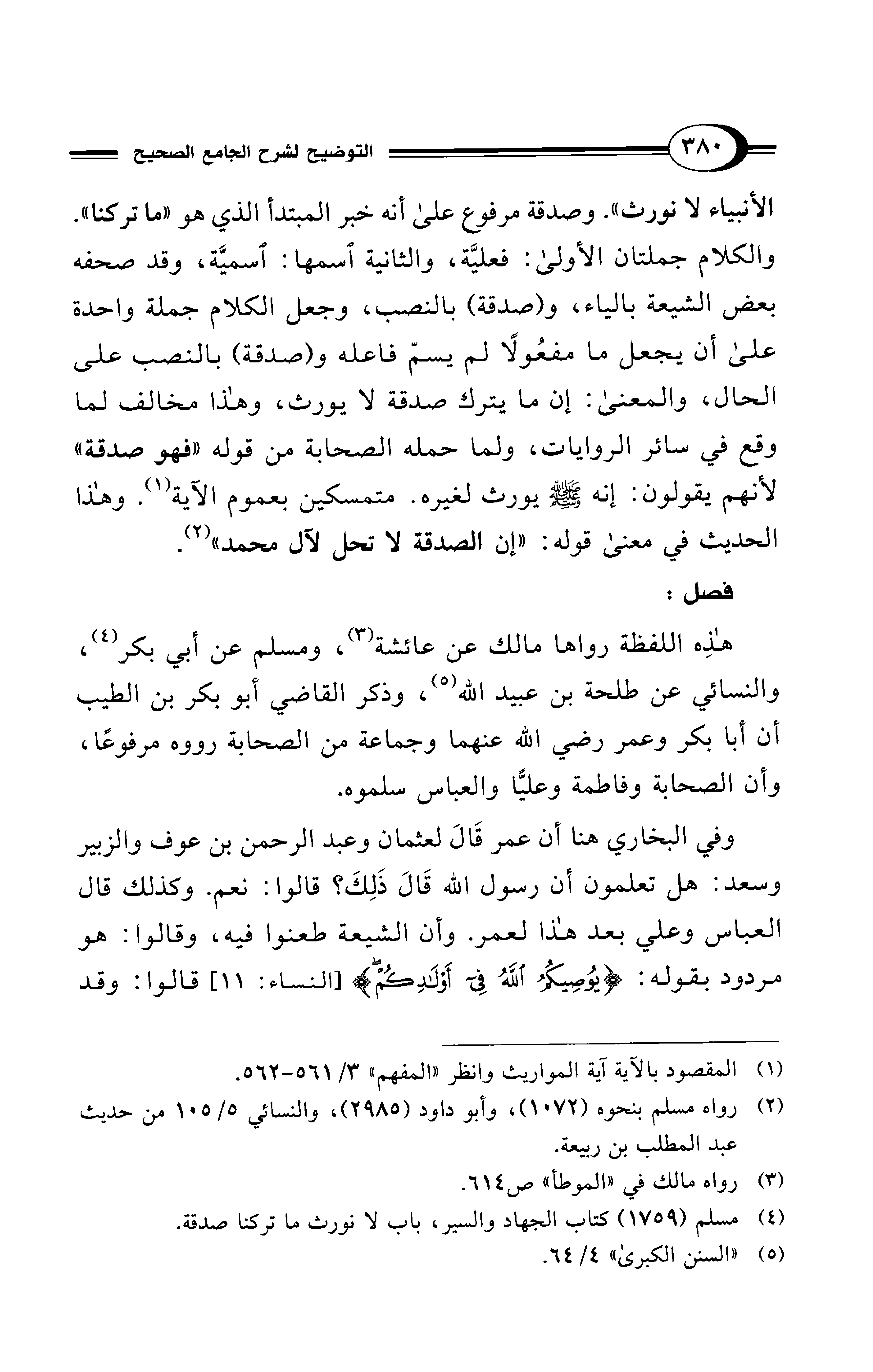(¬4) مسلم (1759) كتاب الجهاد والسير، باب لا نورث ما تركنا صدقة.