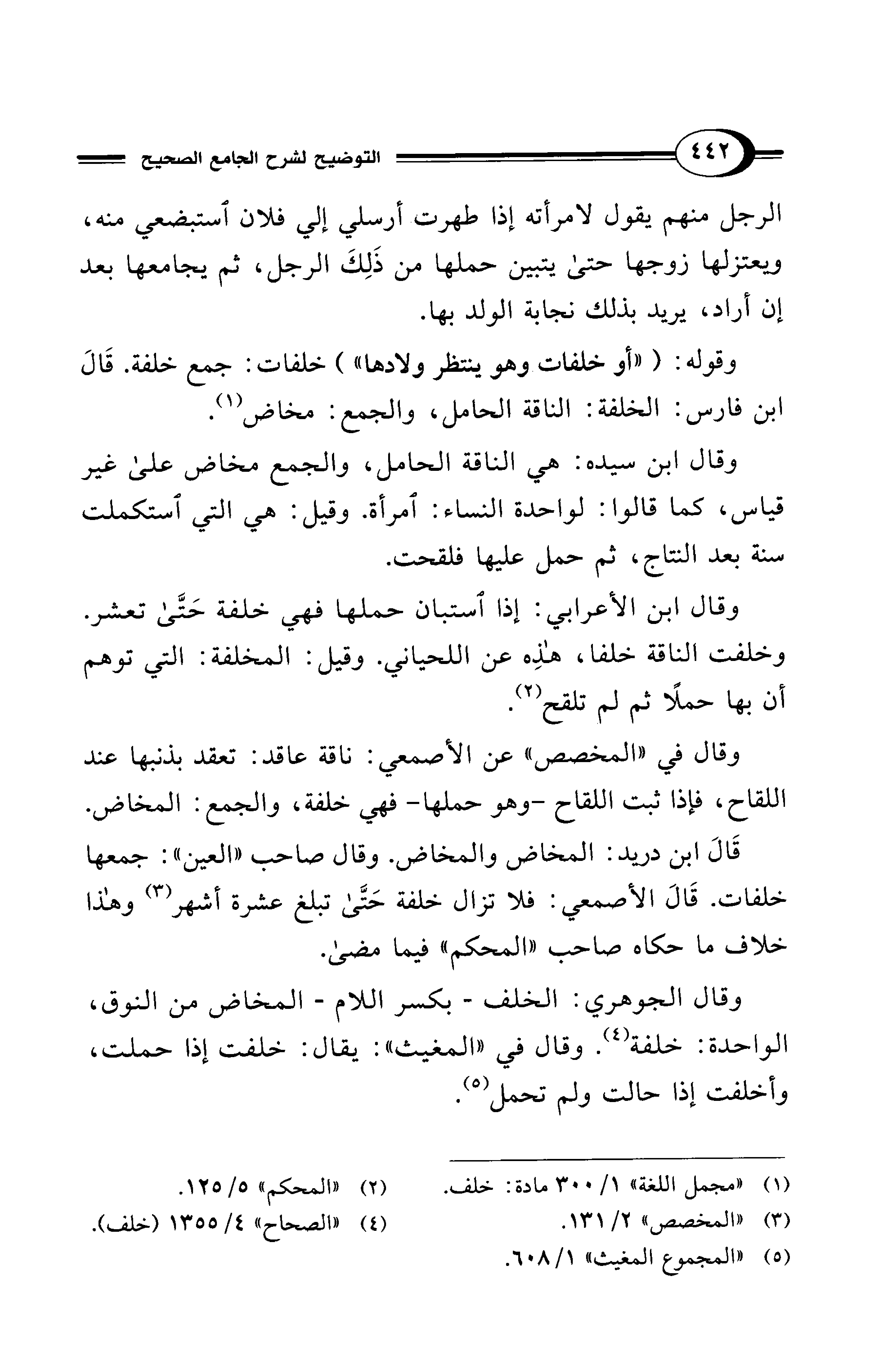 قَالَ ابن دريد: المخاض والمخاض. وقال صاحب "العين": جمعها خلفات. قَالَ الأصمعي: فلا تزال خلفة حَتَّى تبلغ عشرة أشهر (¬3) وهذا خلاف ما حكاه صاحب "المحكم" فيما مضى.