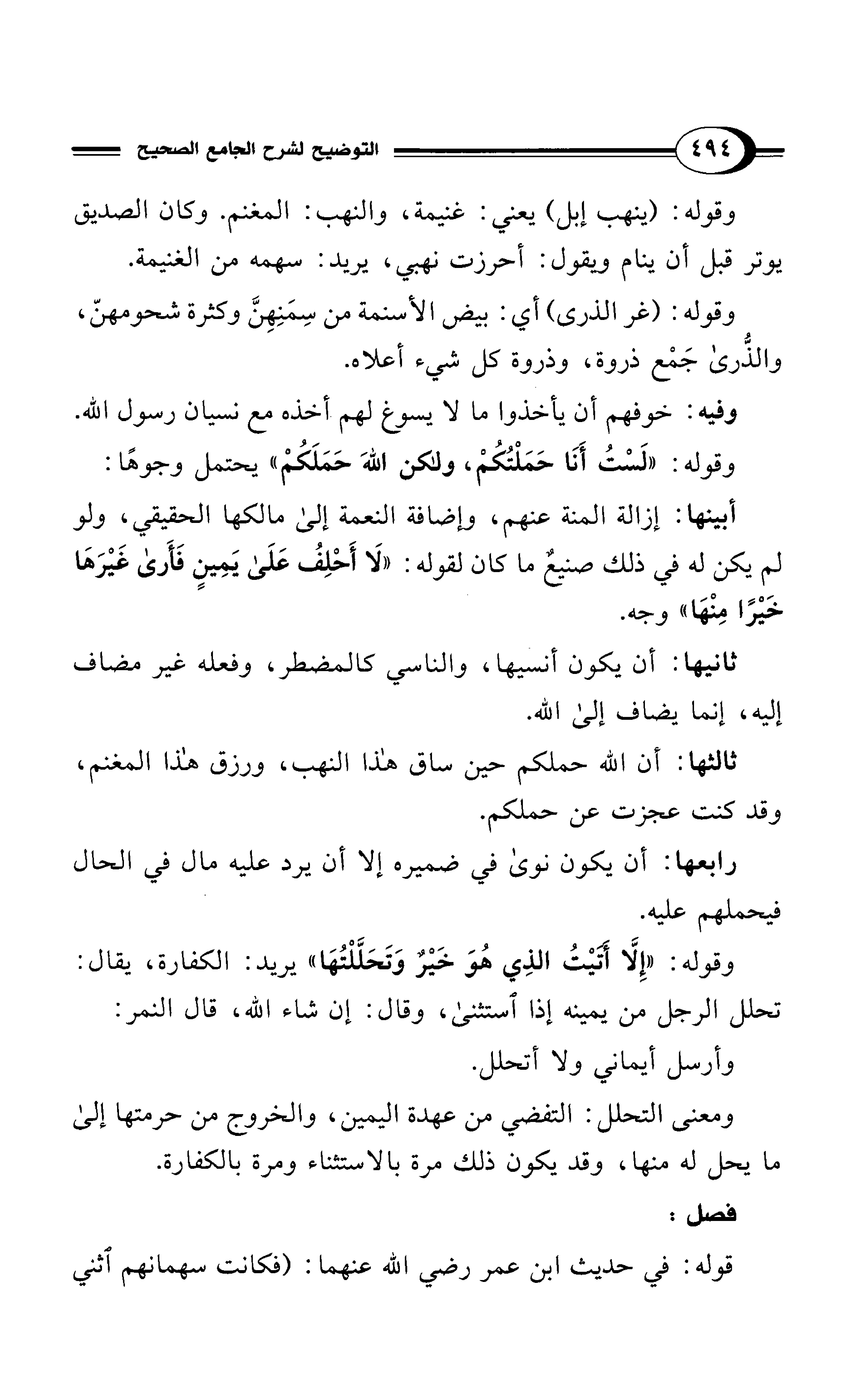 أبينها: إزالة المنة عنهم، وإضافة النعمة إلى مالكها الحقيقي، ولو لم يكن له في ذلك صنيعٌ ما كان لقوله: "لَا أَحْلِفُ عَلَى يَمِينٍ فَأَرى غَيْرَهَا خَيْرًا مِنْهَا" وجه.