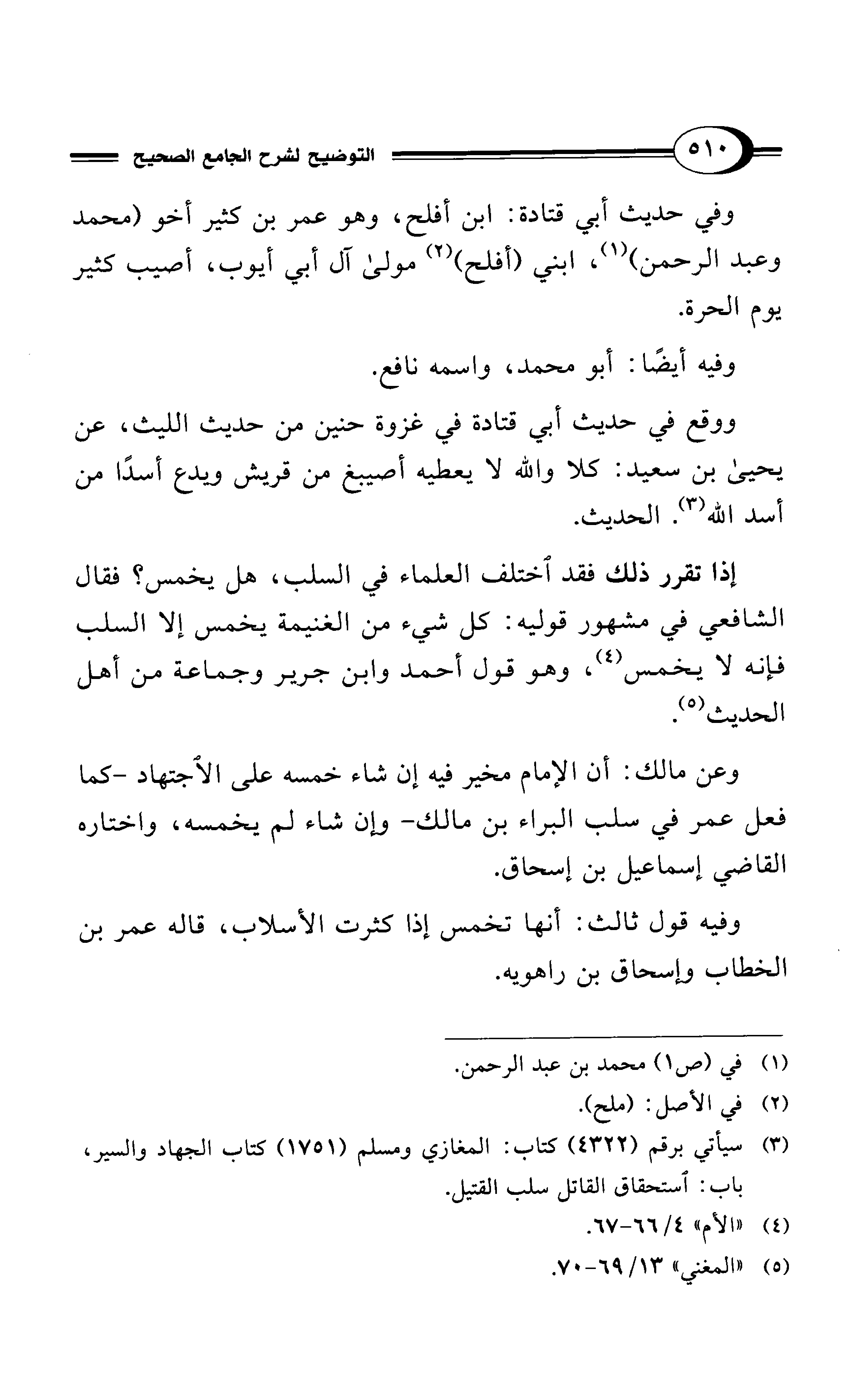 (¬3) سيأتي برقم (4322) كتاب: المغازي ومسلم (1751) كتاب الجهاد والسير، باب: استحقاق القاتل سلب القتيل.
