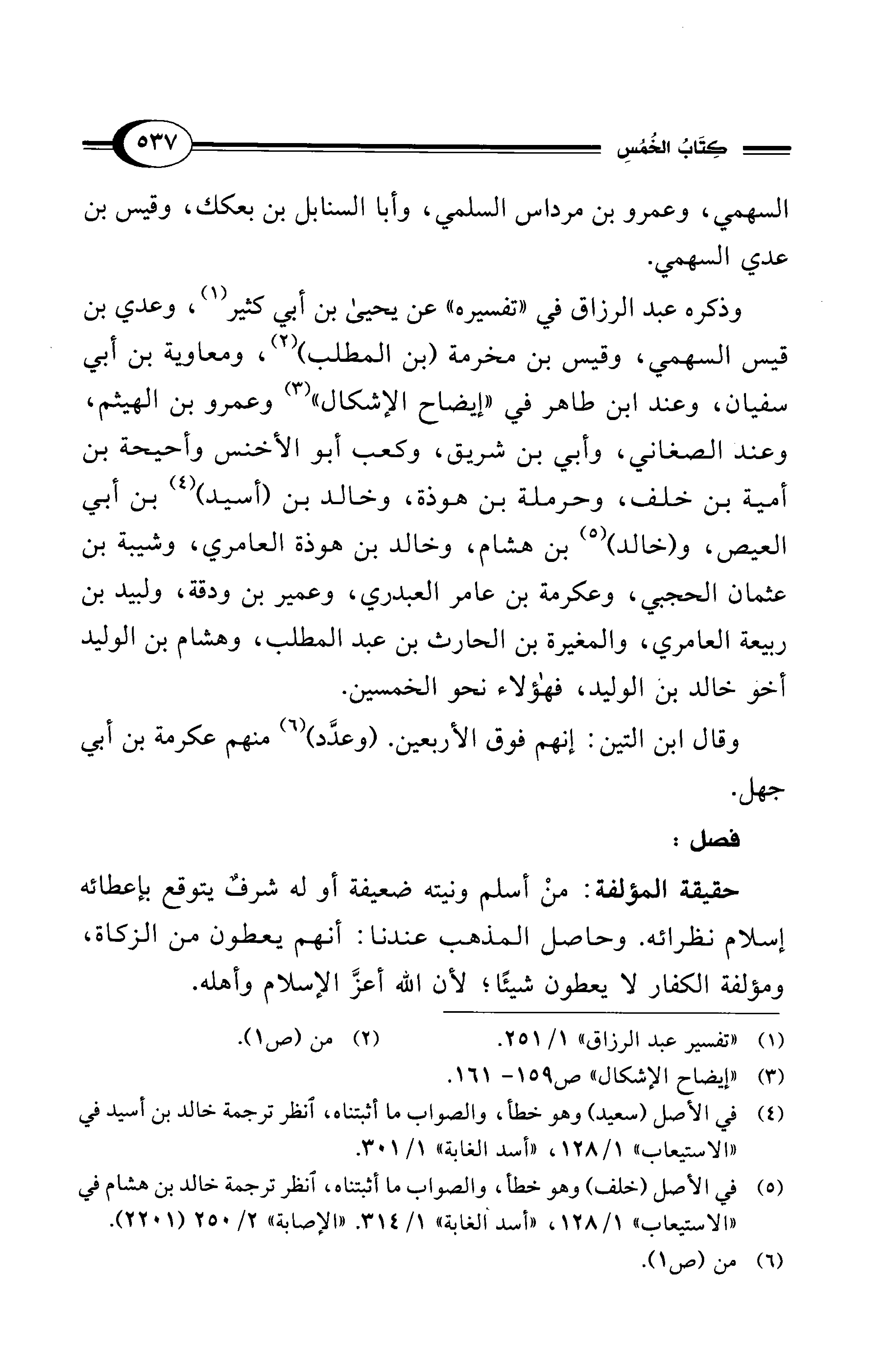 وذكره عبد الرزاق في "تفسيره" عن يحيى بن أبي كثير (¬1)، وعدي بن قيس السهمي، وقيس بن مخرمة (بن المطلب) (¬2)، ومعاوية بن أبي سفيان، وعند ابن طاهر في "إيضاح الإشكال" (¬3) وعمرو بن الهيثم، وعند الصغاني، وأبي بن شريق، وكعب أبو الأخنس وأحيحة بن أمية بن خلف، وحرملة بن هوذة، وخالد بن (أسيد) (¬4) بن أبي العيص، و (خالد) (¬5) بن هشام، وخالد بن هوذة العامري، وشيبة بن عثمان الحجبي، وعكرمة بن عامر العبدري، وعمير بن ودقة، ولبيد بن ربيعة العامري، والمغيرة بن الحارث بن عبد المطلب، وهشام بن الوليد أخو خالد بن الوليد، فهؤلاء نحو الخمسين.