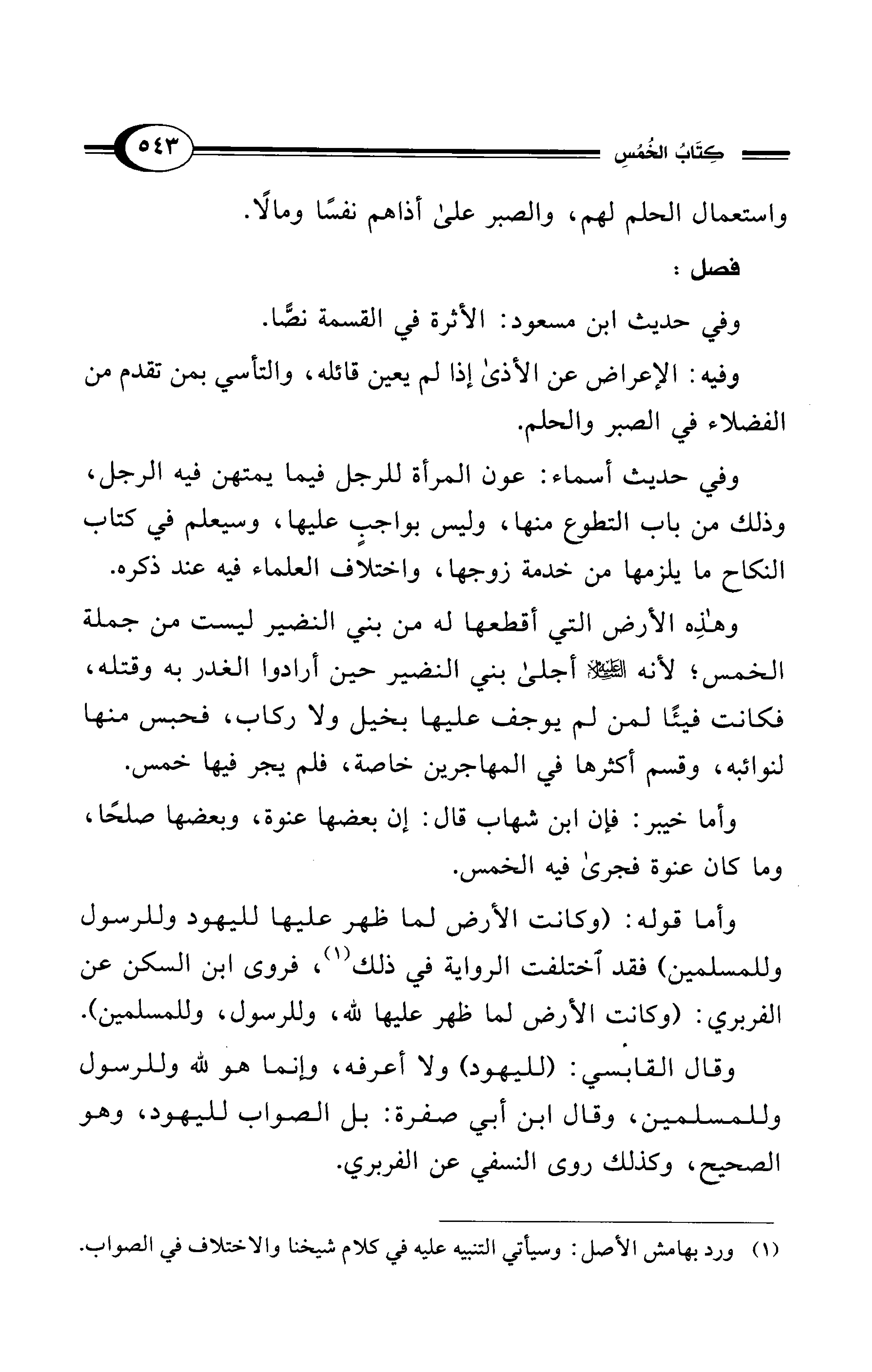 وقال القابسي: (لليهود) ولا أعرفه، وإنما هو لله وللرسول وللمسلمين، وقال ابن أبي صفرة: بل الصواب لليهود، وهو الصحيح، وكذلك روى النسفي عن الفربري.