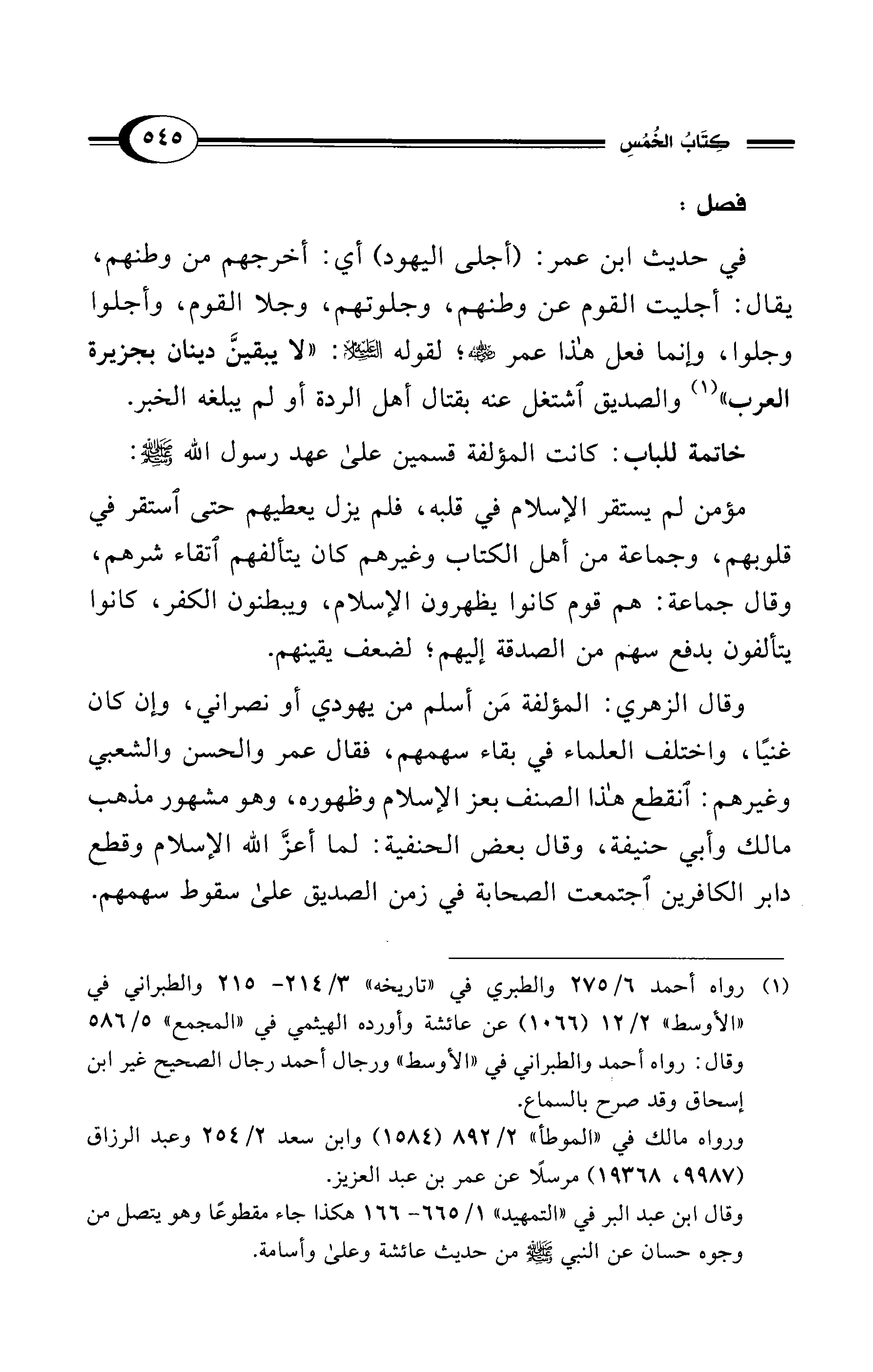 وقال الزهري: المؤلفة مَن أسلم من يهودي أو نصراني، وإن كان غنيًا، واختلف العلماء في بقاء سهمهم، فقال عمر والحسن والشعبي وغيرهم: انقطع هذا الصنف بعز الإسلام وظهوره، وهو مشهور مذهب مالك وأبي حنيفة، وقال بعض الحنفية: لما أعزَّ الله الإسلام وقطع دابر الكافرين اجتمعت الصحابة في زمن الصديق على سقوط سهمهم.