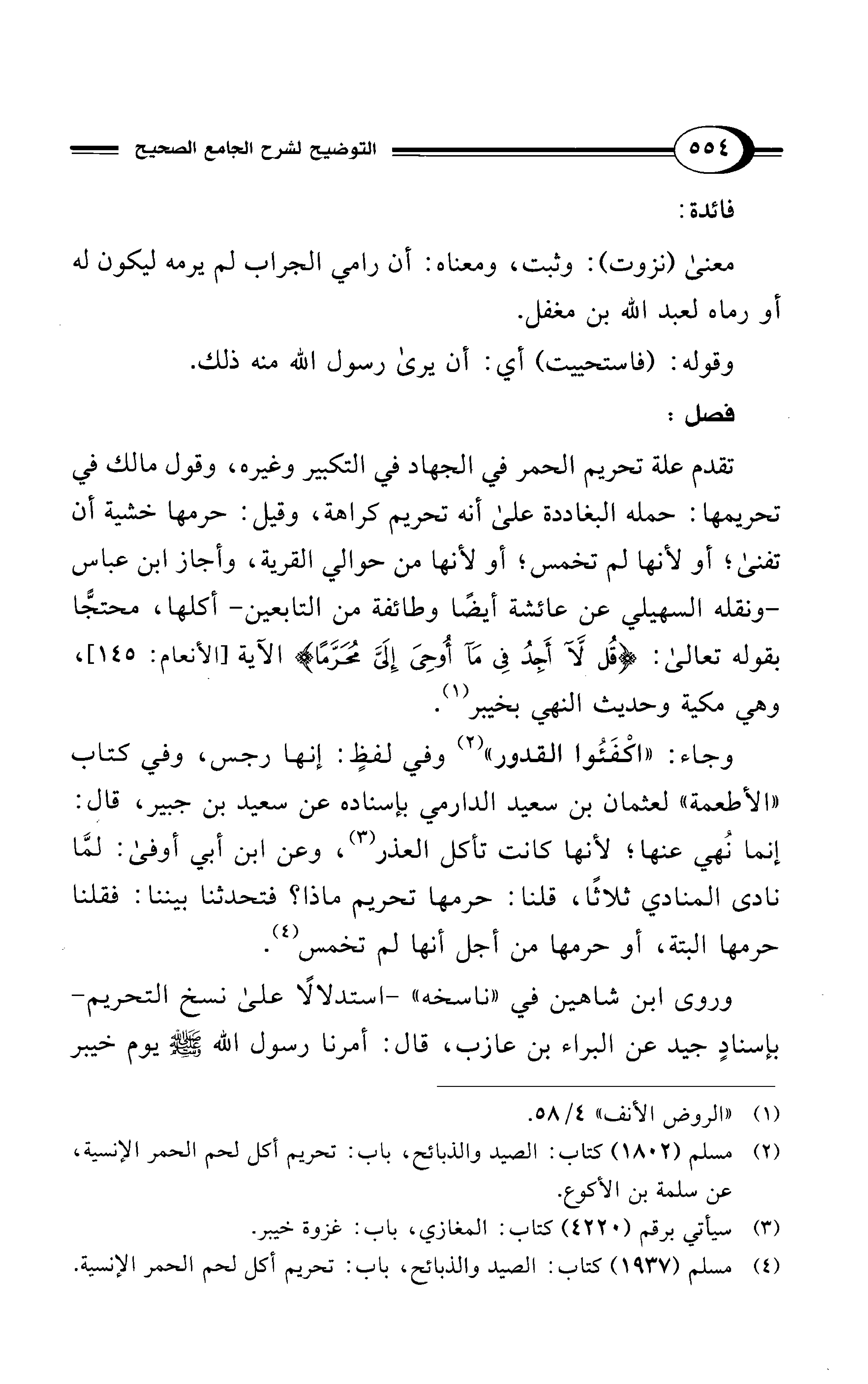 (¬4) مسلم (1937) كتاب: الصيد والذبائح، باب: تحريم أكل لحم الحمر الإنسية.