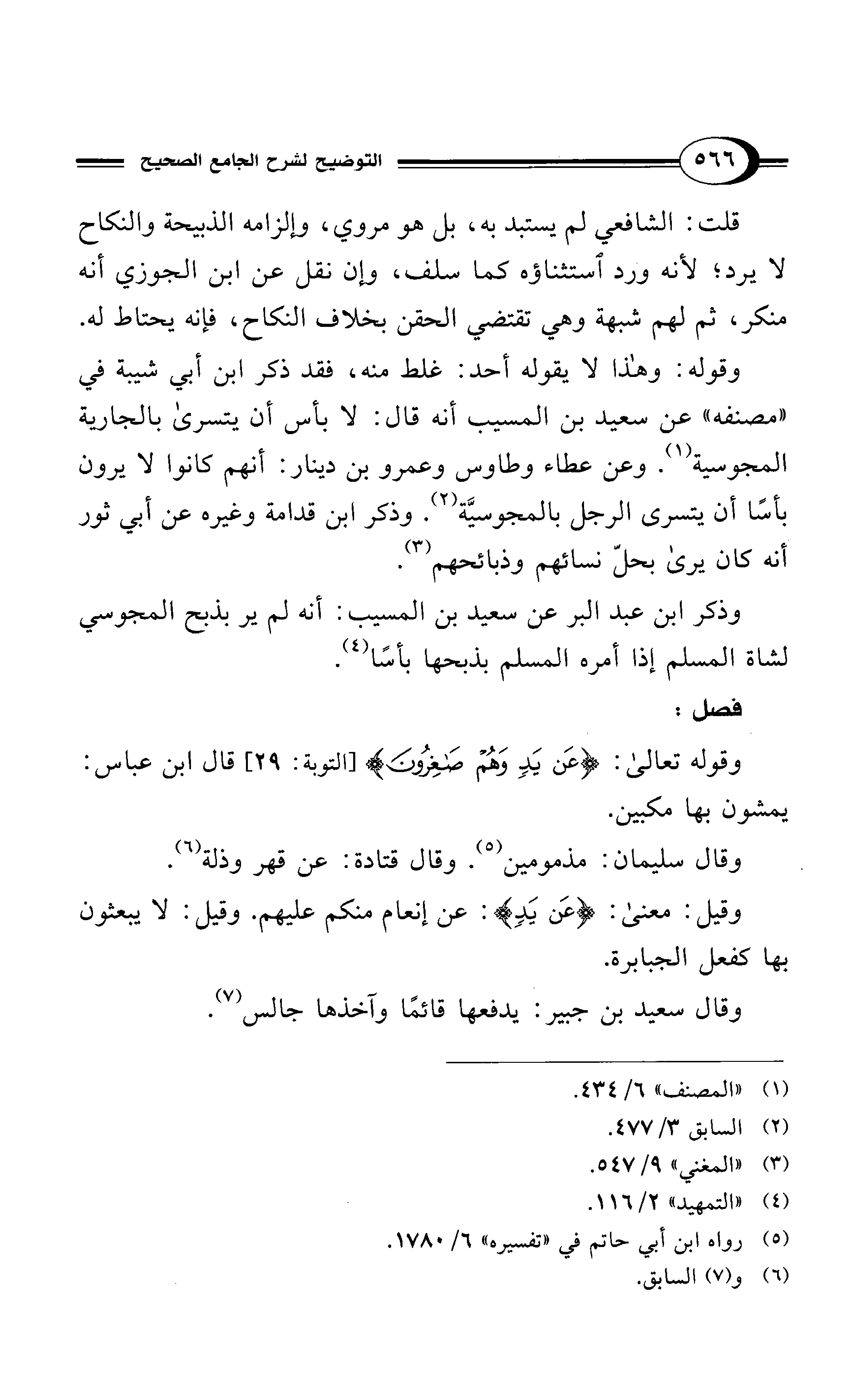 وقوله: وهذا لا يقوله أحد: غلط منه، فقد ذكر ابن أبي شيبة في "مصنفه" عن سعيد بن المسيب أنه قال: لا بأس أن يتسرى بالجارية المجوسية (¬1). وعن عطاء وطاوس وعمرو بن دينار: أنهم كانوا لا يرون بأسًا أن يتسرى الرجل بالمجوسيَّة (¬2). وذكر ابن قدامة وغيره عن أبي ثور أنه كان يرى بحلّ نسائهم وذبائحهم (¬3).