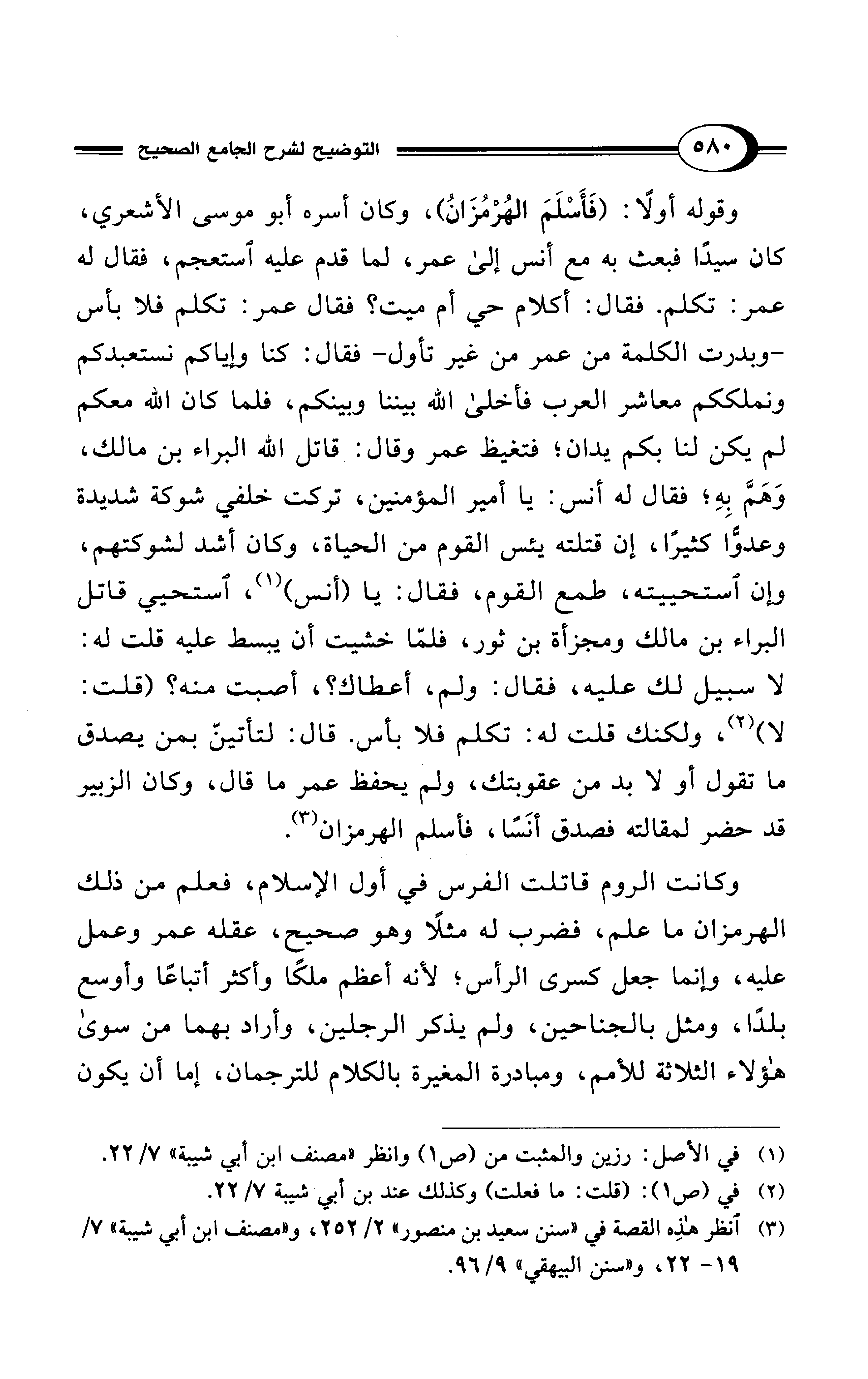 (¬3) انظر هذِه القصة في "سنن سعيد بن منصور" 2/ 252، و"مصنف ابن أبي شيبة" 7/ 19 - 22، و"سنن البيهقي" 9/ 96.
