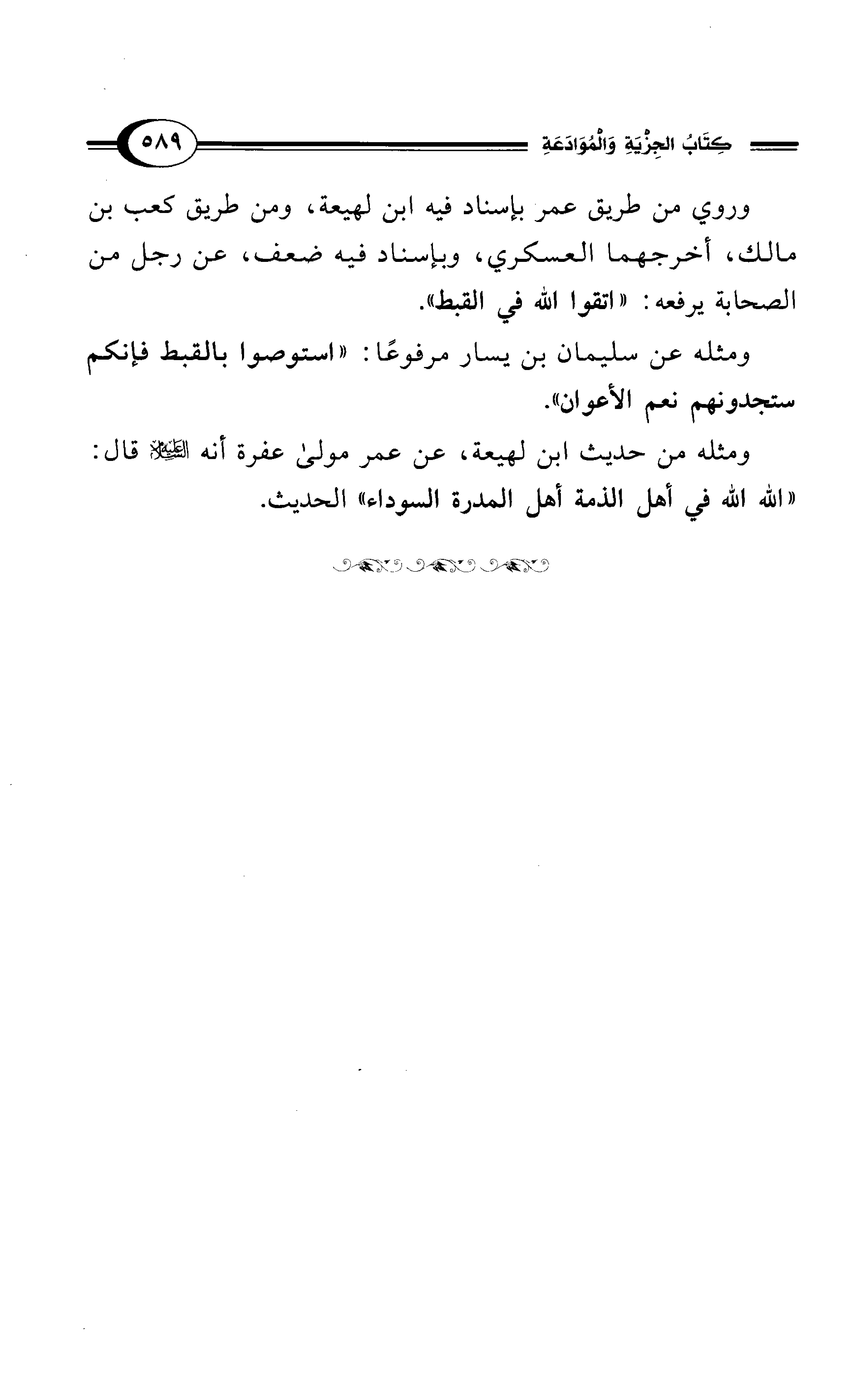 وروي من طريق عمر بإسناد فيه ابن لهيعة، ومن طريق كعب بن مالك، أخرجهما العسكري، وبإسناد فيه ضعف، عن رجل من الصحابة يرفعه: "اتقوا الله في القبط".