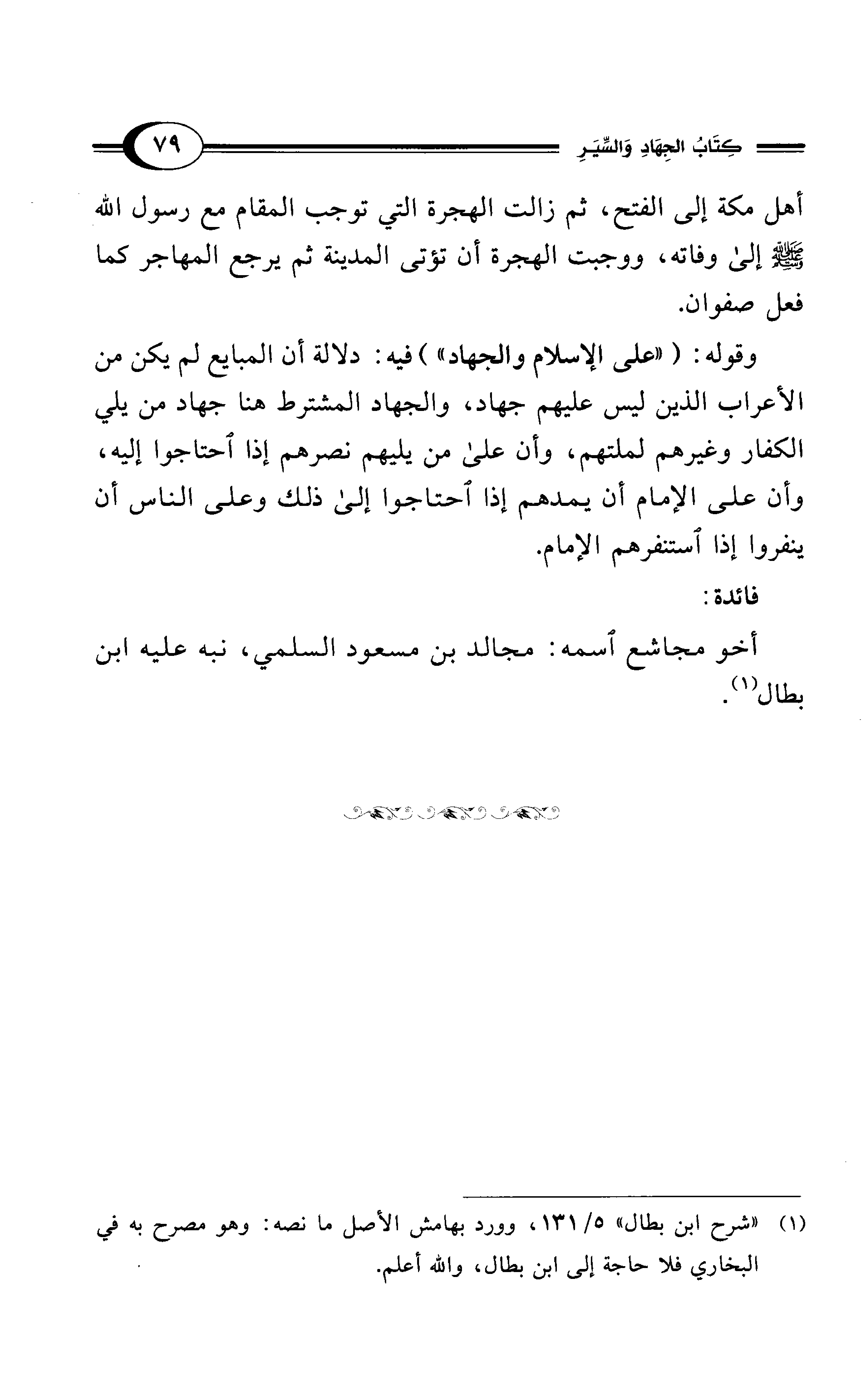 (¬1) "شرح ابن بطال" 5/ 131، وورد بهامش الأصل ما نصه: وهو مصرح به في البخاري فلا حاجة إلى ابن بطال، والله أعلم.