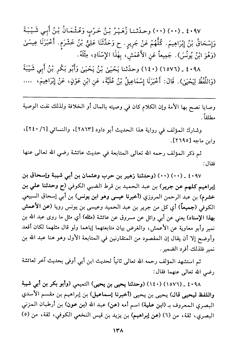 ٤٠٩٨ - (١٥٧٦) (١٤٠) (وحدثنا يحيى بن يحيى) التميمي (وأبو بكر بن أبي شيبة واللفظ ليحيى قال) يحيى بن يحيى (أخبرنا إسماعيل) بن إبراهيم بن مقسم الأسدي البصري المعروف بـ (ابن علية) اسم أمه (عن) عبد الله (بن عون) بن أرطبان المزني البصري، ثقة، من (٦) (عن إبراهيم) بن يزيد بن قيس النخعي الكوفي، ثقة، من (٥)