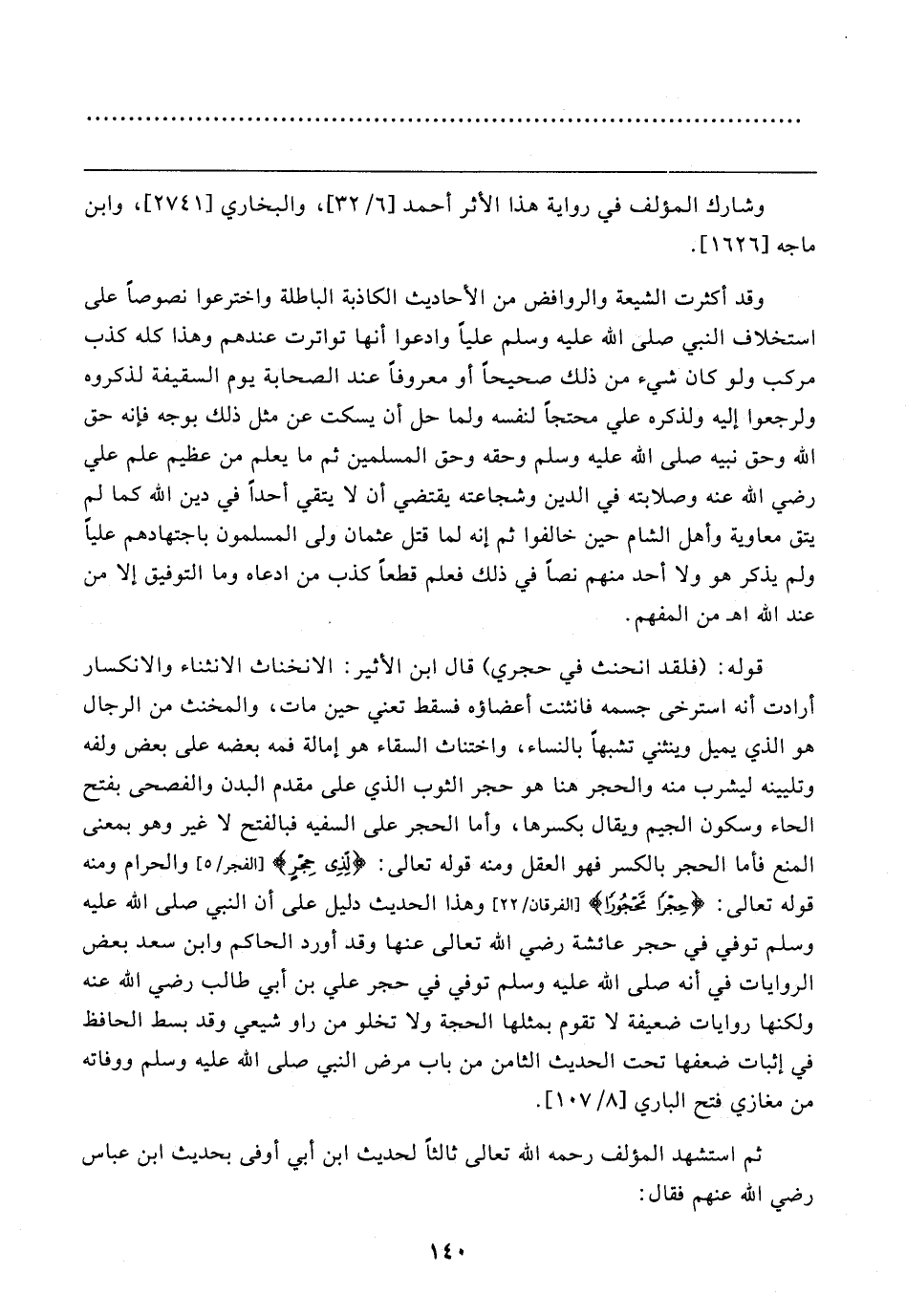 وقد أكثرت الشيعة والروافض من الأحاديث الكاذبة الباطلة واخترعوا نصوصًا على استخلاف النبي صلى الله عليه وسلم عليًّا وادعوا أنها تواترت عندهم وهذا كله كذب مركب ولو كان شيء من ذلك صحيحًا أو معروفًا عند الصحابة يوم السقيفة لذكروه ولرجعوا إليه ولذكره علي محتجًا لنفسه ولما حل أن يسكت عن مثل ذلك بوجه فإنه حق الله وحق نبيه صلى الله عليه وسلم وحقه وحق المسلمين ثم ما يعلم من عظيم علم علي رضي الله عنه وصلابته في الدين وشجاعته يقتضي أن لا يتقي أحدًا في دين الله كما لم يتق معاوية وأهل الشام حين خالفوا ثم إنه لما قتل عثمان ولى المسلمون باجتهادهم عليًّا ولم يذكر هو ولا أحد منهم نصًّا في ذلك فعلم قطعًا كذب من ادعاه وما التوفيق إلا من عند الله اهـ من المفهم.