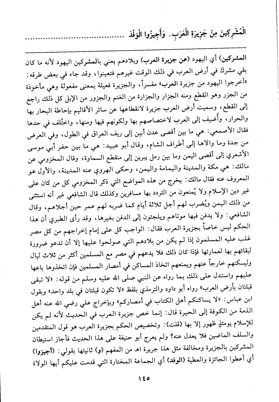 الْمُشْرِكِينَ مِنْ جَزِيرَةِ الْعَرَبِ. وَأَجِيزُوا الْوَقدَ