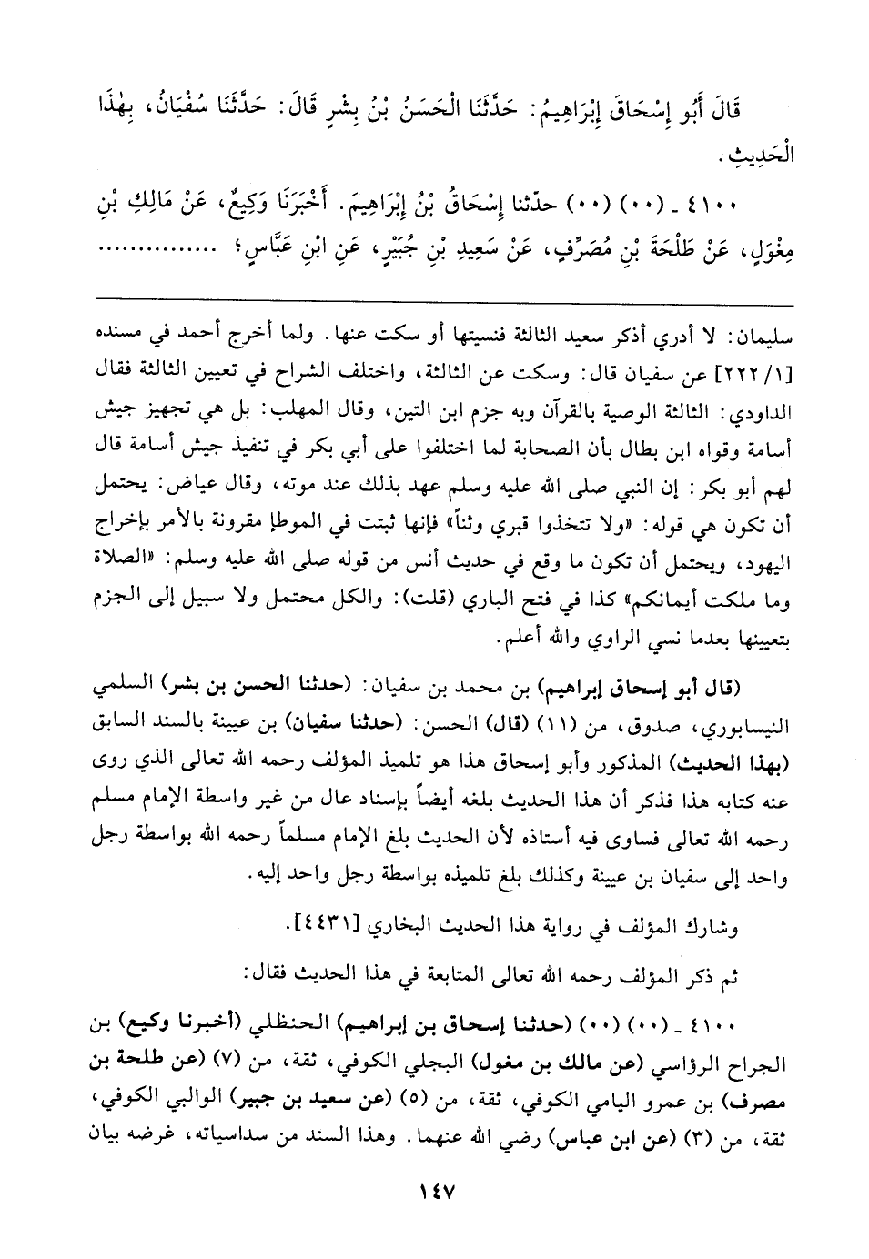 ٤١٠٠ - (٠٠) (٠٠) (حدثنا إسحاق بن إبراهيم) الحنظلي (أخبرنا وكيع) بن الجراح الرؤاسي (عن مالك بن مغول) البجلي الكوفي، ثقة، من (٧) (عن طلحة بن مصرف) بن عمرو اليامي الكوفي، ثقة، من (٥) (عن سعيد بن جبير) الوالبي الكوفي، ثقة، من (٣) (عن ابن عباس) رضي الله عنهما. وهذا السند من سداسياته، غرضه بيان