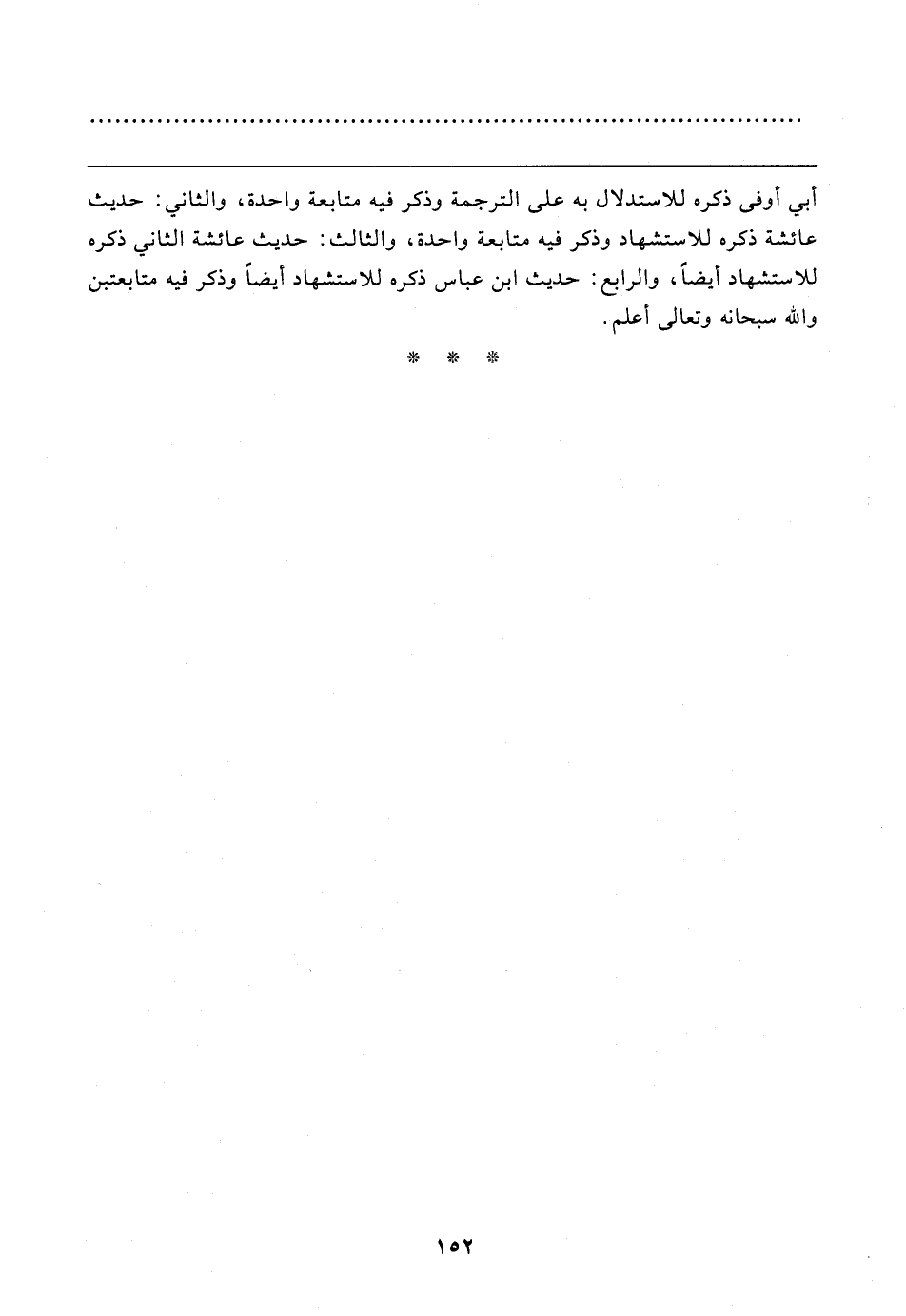 أبي أوفى ذكره للاستدلال به على الترجمة وذكر فيه متابعة واحدة، والثاني: حديث عائشة ذكره للاستشهاد وذكر فيه متابعة واحدة، والثالث: حديث عائشة الثاني ذكره للاستشهاد أيضًا، والرابع: حديث ابن عباس ذكره للاستشهاد أيضًا وذكر فيه متابعتين والله سبحانه وتعالى أعلم.