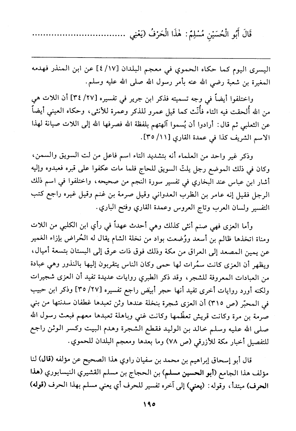 قَال أَبُو الْحُسَينِ مُسْلِمٌ: هذَا الْحَرْفُ (يَعْنِي