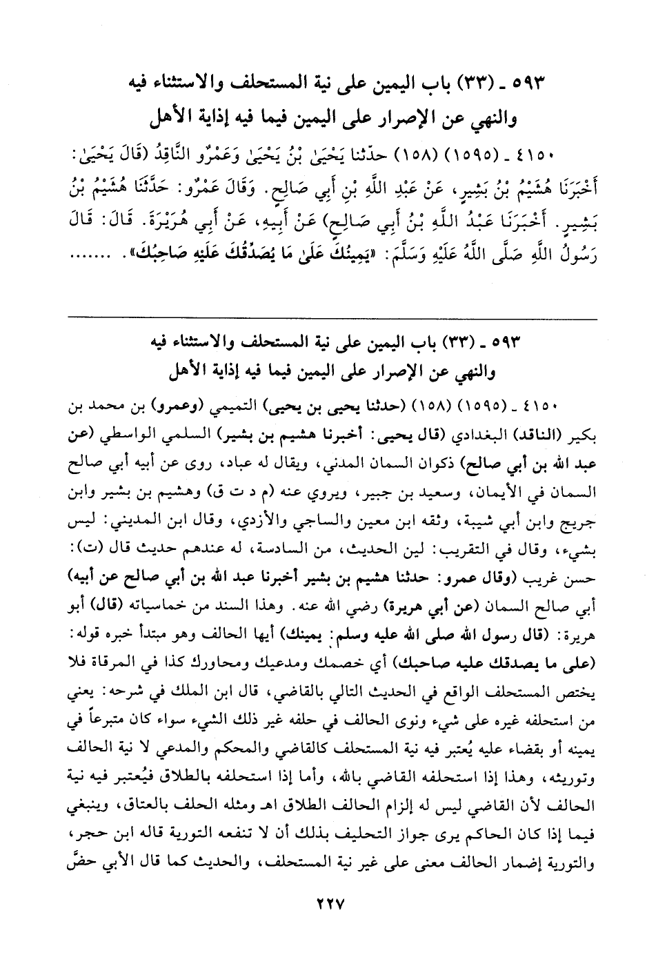 ٥٩٣ - (٣٣) باب اليمين على نية المستحلف والاستثناء فيه والنهي عن الإصرار على اليمين فيما فيه إذاية الأهل
