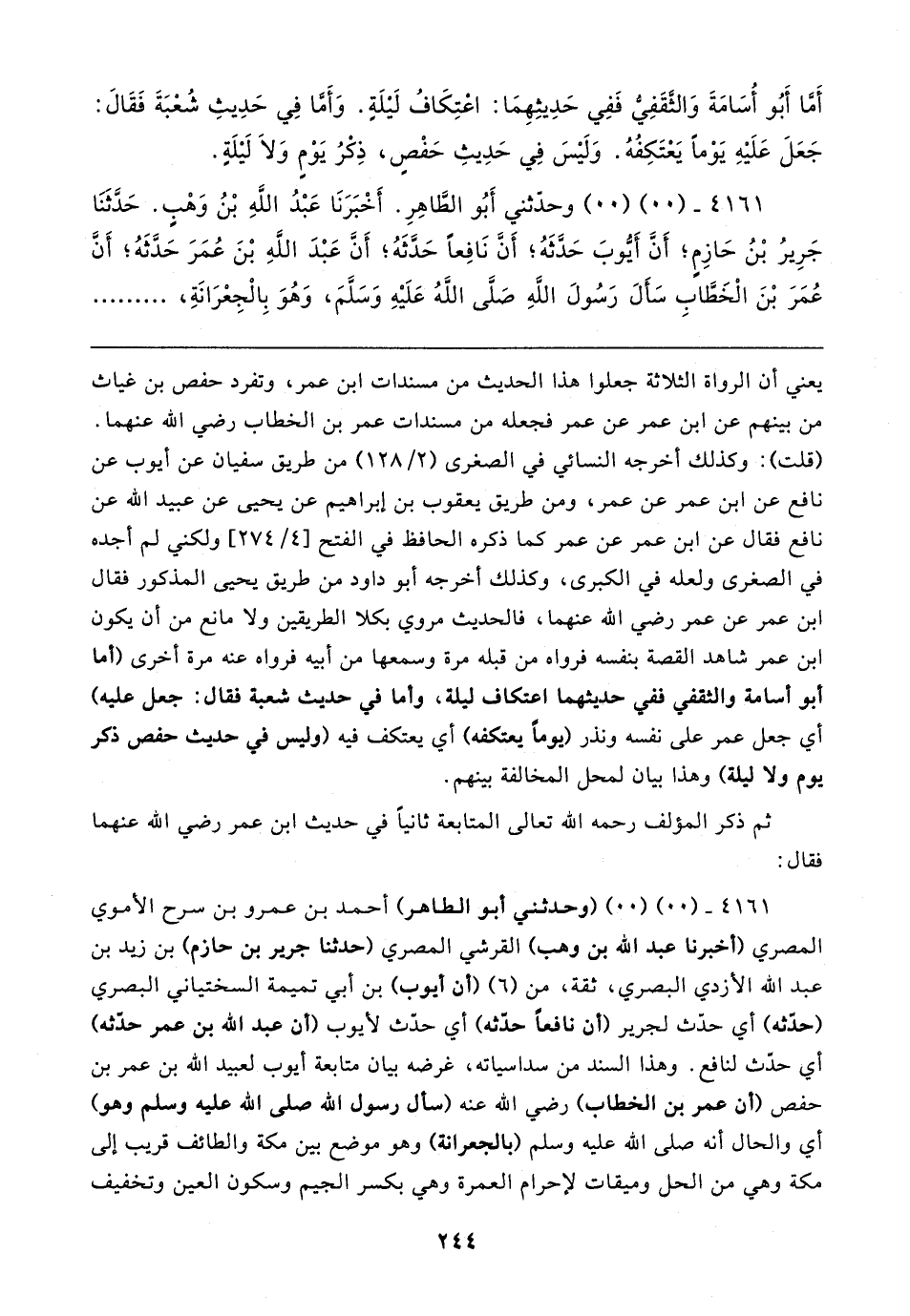 ٤١٦١ - (٠٠) (٠٠) وحدثني أَبُو الطَّاهِرِ. أخْبَرَنَا عَبْدُ الله بْنُ وَهْبٍ. حَدَّثَنَا جَرِيرُ بْنُ حَازِمٍ؛ أَنَّ أَيُّوبَ حَدَّثَهُ؛ أن نَافِعًا حَدَّثَهُ؛ أَنَّ عَبْدَ اللَّهِ بنَ عُمَرَ حَدَّثَهُ؛ أَنَّ عُمَرَ بْنَ الْخَطَّابِ سَأَلَ رَسُولَ الله صَلى اللهُ عَلَيهِ وَسَلمَ، وَهُوَ بِالْجِعْرَانَةِ،