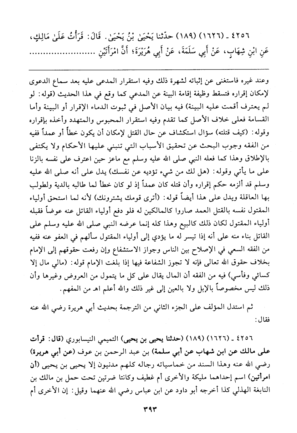 ٤٢٥٦ - (١٦٢٦) (١٨٩) حدَّثنا يَحْيَى بْنُ يَحْيَى. قَال: قَرَأْتُ عَلَى مَالِكٍ، عَنِ ابْنِ شِهَابٍ، عَنْ أَبِي سَلَمَةَ، عَنْ أَبِي هُرَيرَةَ؛ أَنَّ امْرَأَتَينِ