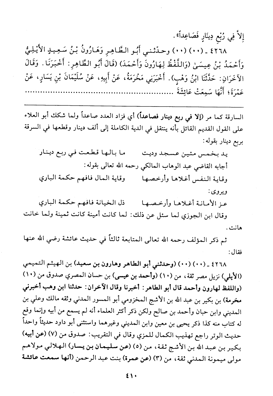 ٤٢٦٨ - (٠٠) (٠٠) (وحدثني أبو الطاهر وهارون بن سعيد) بن الهيثم التَّمِيمِيّ (الأيلي) نزيل مصر ثِقَة، من (١٠) (وأَحمد بن عيسى) بن حسان المصري صدوق من (١٠) (واللفظ لهارون وأَحمد قال أبو الطاهر: أخبرنا وقال الآخران: حَدَّثَنَا ابن وهب أخبرني مخرمة) بن بكير بن عبد الله بن الأَشَج المخزومي أبو المسور المدنِيُّ وثقه مالك وعلي بن المدينيّ وابن حبان وأَحمد بن صالح ولكن ذكر أكثر العلماء أنَّه لم يسمع من أَبيه وإنما وقع له كتاب منه كذا ذكر يحيى بن معين وابن المدينيّ وغيرهما واستثنى أبو داود حديثًا واحدًا حديث الوتر راجع تهذيب الكمال للمزي وقال في التقريب: صدوق من (٧) (عن أَبيه) بكير بن عبد الله بن الأشج ثِقَة، من (٥) (عن سليمان بن يسار) الهلالي مولاهم مولى ميمونة المدنِيُّ ثِقَة، من (٣) (عن عمرة) بنت عبد الرَّحْمَن (أنها سمعت عائشة