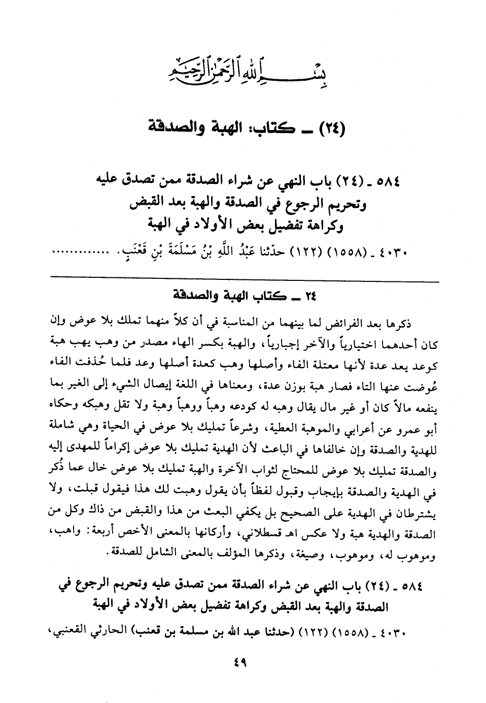 ٥٨٤ - (٢٤) باب النهي عن شراء الصدقة ممن تصدق عليه وتحريم الرجوع في الصدقة والهبة بعد القبض وكراهة تفضيل بعض الأولاد في الهبة