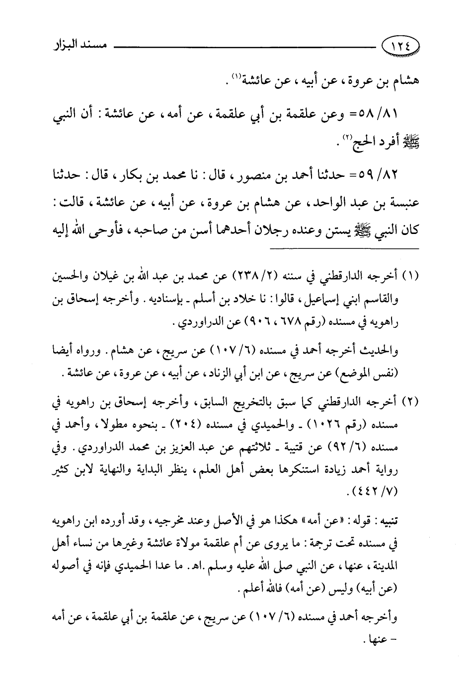 82- حدثنا أحمد بن منصور، قالَ: حَدَّثَنا محمد بن بكار، قالَ: حَدَّثَنا عنبسة بن عبد الواحد , عن هشام بن عروة , عن أبيه , عن عائشة رضي الله عنها قالت: كان النبي صلى الله عليه وسلم يستن وعنده رجلان أحدهما أسن من صاحبه فأوحى الله إليه في فضل السواك أن أعطي الأكبر.