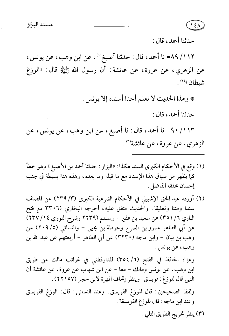 113- حدثنا أحمد، قالَ: حَدَّثَنا أصبغ , عن ابْنُ وَهْبٍ , عَنْ يُونُسَ , عَنِ الزُّهْرِيِّ , عَنْ عروة , عن عائشة رضي الله عنها.