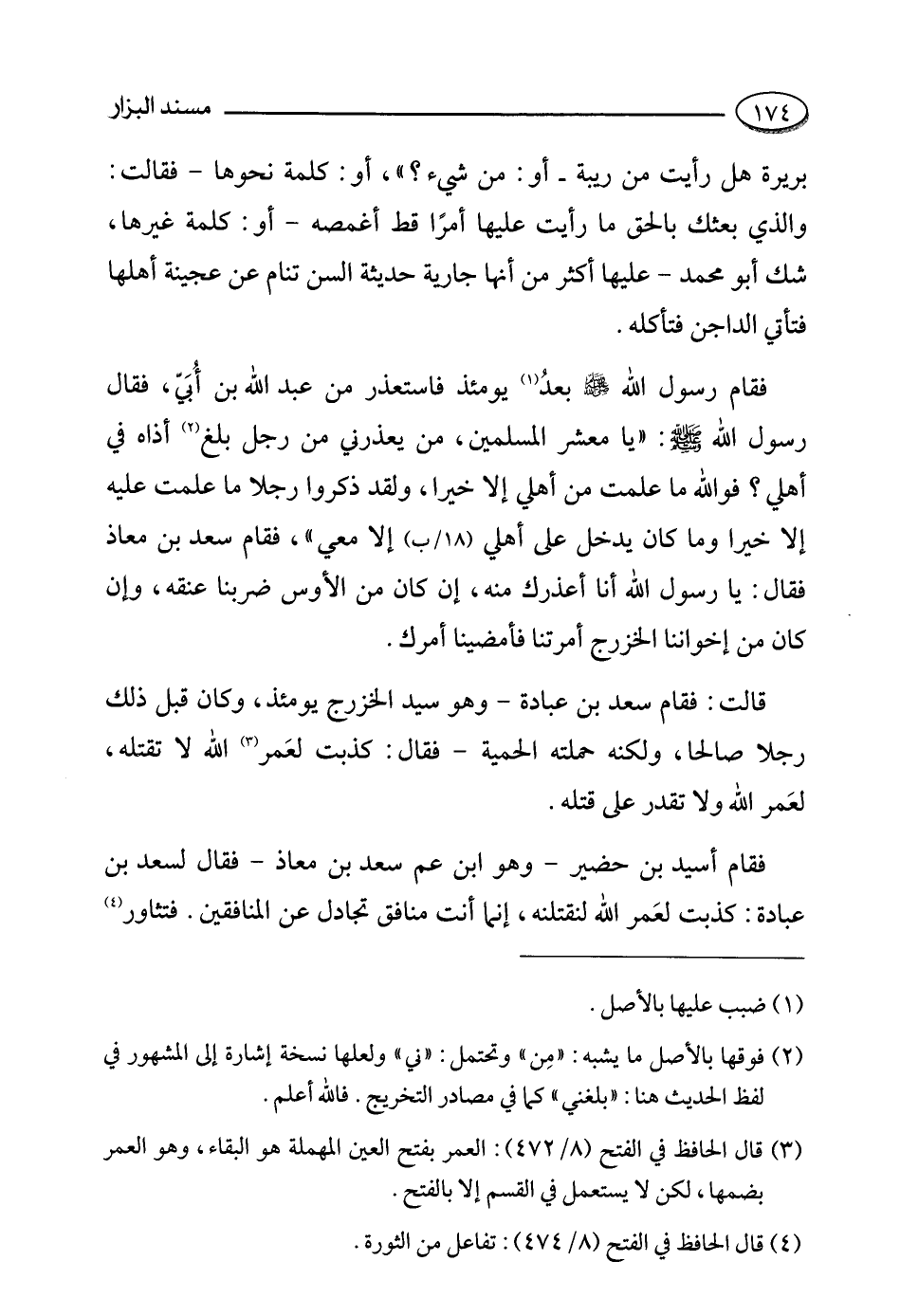 فقام أسيد بن حضير وهو ابن عم سعد بن معاذ فقال لسعد بن عبادة كذبت لعمر الله لنقتلنه إنما أنت منافق تجادل , عن المنافقين. فتثاور الحيان الأوس والخزرج حتى هموا أن يقتتلوا ورسول الله صلى الله عليه وسلم قائم على المنبر فلم يزل رسول الله صلى الله عليه وسلم يخفضهم حتى سكنوا أو سكتوا.