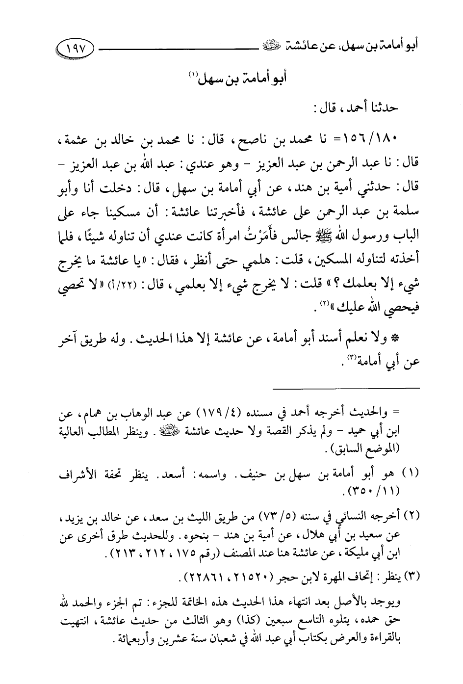 ولا نعلم أسند أبو أمامة , عن عائشة رضي الله عنها إلا هذا الحديث وله طريق آخر , عن أبي أمامة.
