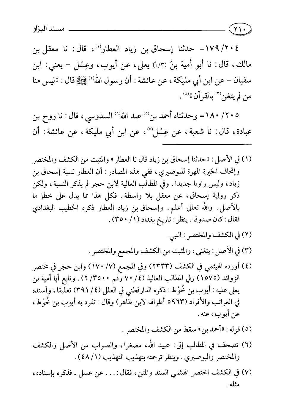205- وحدثناه أحمد بن عبد الله السدوسي، قالَ: حَدَّثَنا روح بن عبادة، قالَ: حَدَّثَنا شعبة , عن عسل , عن ابن أبي مليكة , عن عائشة رضي الله عنها أَنَّ النَّبِيَّ صَلَّى اللَّهُ عَلَيْهِ وَسَلَّمَ قَالَ: ليس منا من لم يتغن بالقرآن.