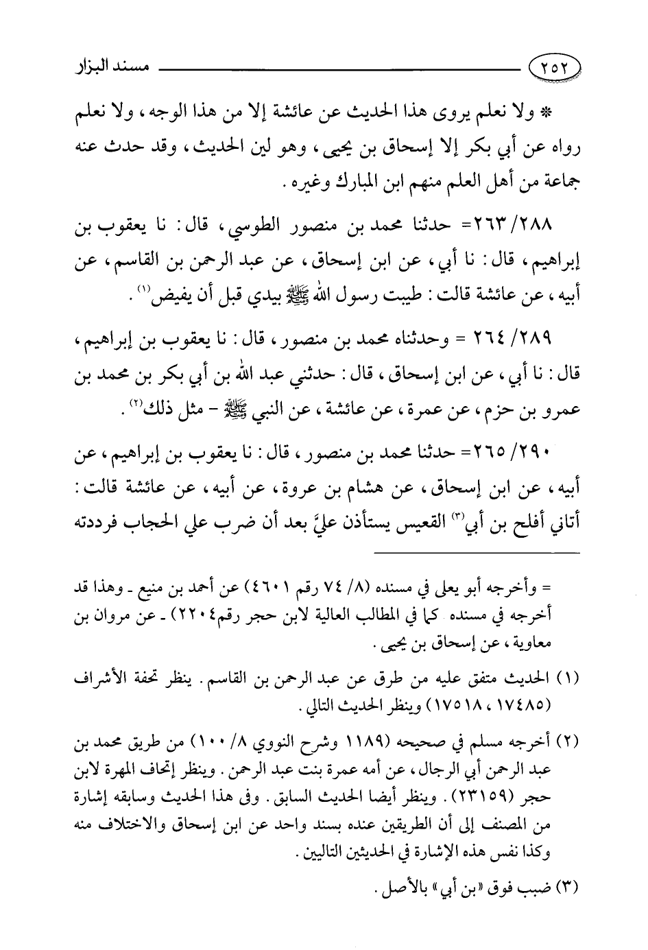 288- حدثنا محمد بن منصور الطوسي، قالَ: حَدَّثَنا يعقوب بن إبراهيم، قالَ: حَدَّثَنا أبي , عن ابن إسحاق , عن عبد الرحمن بن القاسم , عن أبيه , عن عائشة رضي الله عنها قالت: طيبت رسول الله صلى الله عليه وسلم بيدي قبل أن يفيض.